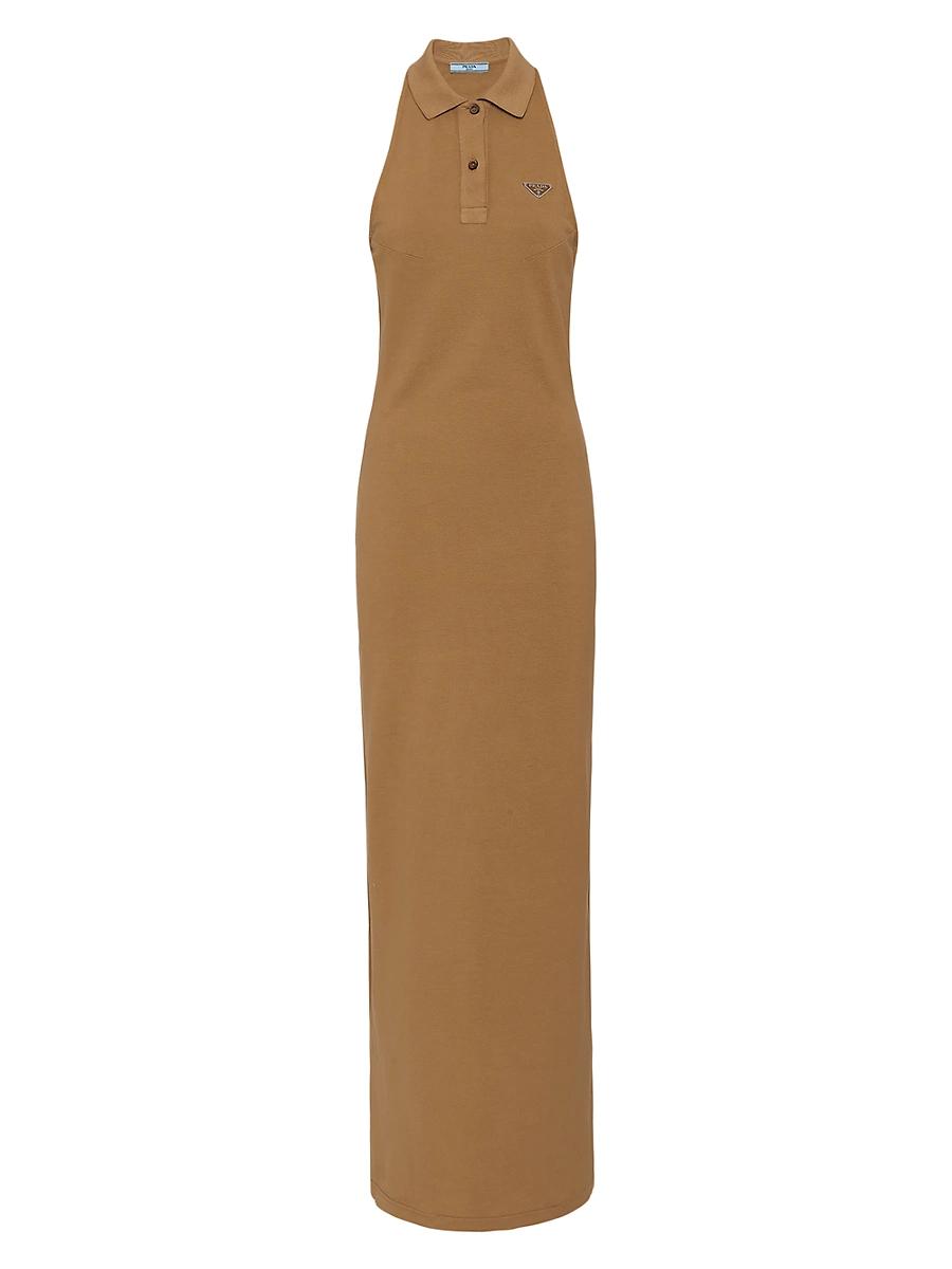 This pique dress with polo collar features a slim-fit silhouette. The enameled metal triangle logo completes the garment with an iconic note. Slim fit Polo collar Enameled metal triangle logo Side slits Garment dyed Cotton Imported SIZE 150.0H. Lsd Rtw - Prada Rtw > Prada > Saks Fifth Avenue > Barneys. Prada. Color: Beige Khaki. Size: 0.