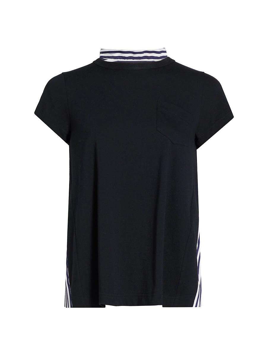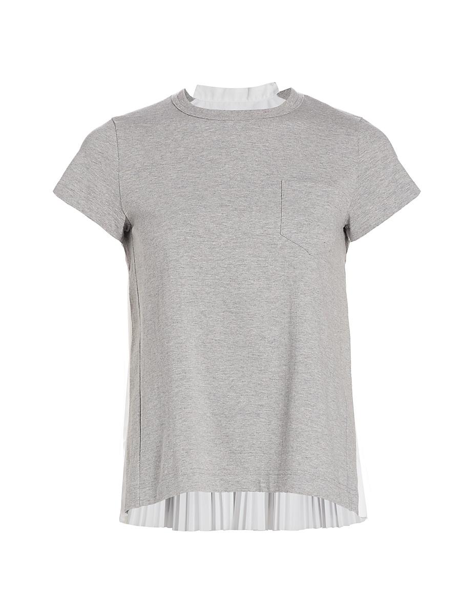 This Sacai crewneck T-shirt features an elevated twist with its pleated back. Crewneck Short sleeves Chest patch pocket Pulls over 100% cotton Combo: 65% polyester/35% cotton Dry clean Made in Japan SIZE & FIT This style is designed for a relaxed fit About 24 from shoulder to hem Model measurements: 510 tall Model is wearing a US size Small. Advanced Designer - Sacai > Sacai > Saks Fifth Avenue > Barneys. Sacai. Color: Light Gray. Size: Large.