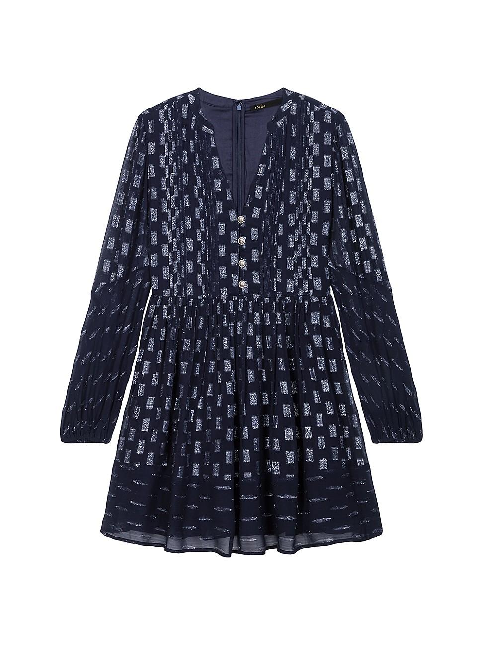 This winter, the studio has created an ode to timeless Parisian elegance. From preppy everyday wear to glittering evening events, the new collection is all about sophistication and boldness, in a subtle interplay of colours and cuts. With its floral motif, this short dress exudes airy elegance. Featuring a button-down fastening and long, semi-sheer sleeves, it has a daring V-neckline and a pleated-effect skirt with an impeccable drape. Complete your seasonal look with socks, loafers and a bag. Short dress Floral motif V-neckline Button fastening Long semi-sheer sleeves Elasticated cuffs Pleated-effect flared skirt Lined Main material: 91% viscose, 9% metalized fibers Lining: 100% modal Imported SIZE & FIT Model measurements: 58 Model is wearing a size 36. Lsd Rtw - Maje > Maje > Saks Fifth Avenue > Barneys. Maje. Color: Navy. Size: 6.