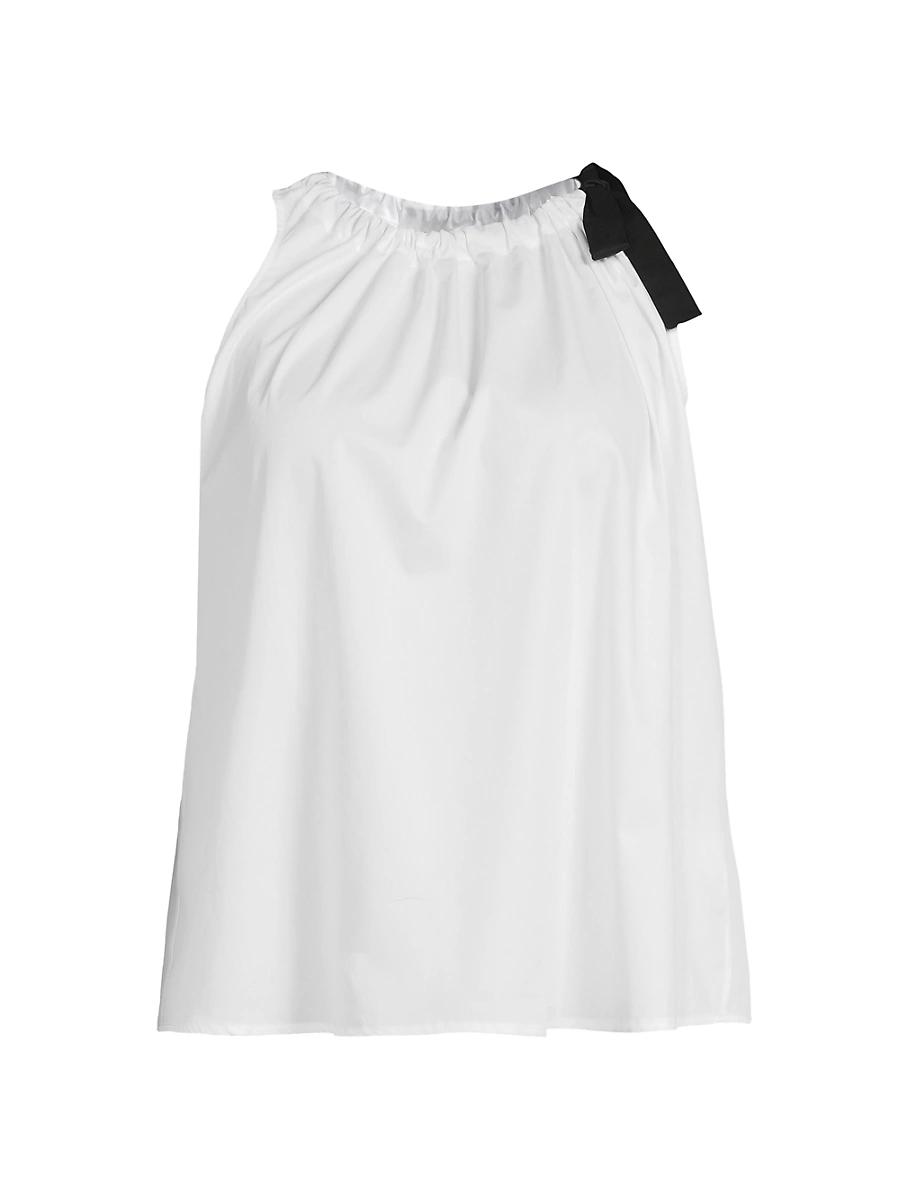 Crafted of soft cotton, Harshmans Acadia tank showcases a gathered round neck adorned with a contrasting bow detail. Round neck Sleeveless Shoulder bow Pulls over 100% cotton Machine wash Imported SIZE & FIT About 29.5 from shoulder to hem. Salon Z - Salon Z Collections > Harshman > Saks Fifth Avenue > Barneys. Harshman. Color: White. Size: 22.