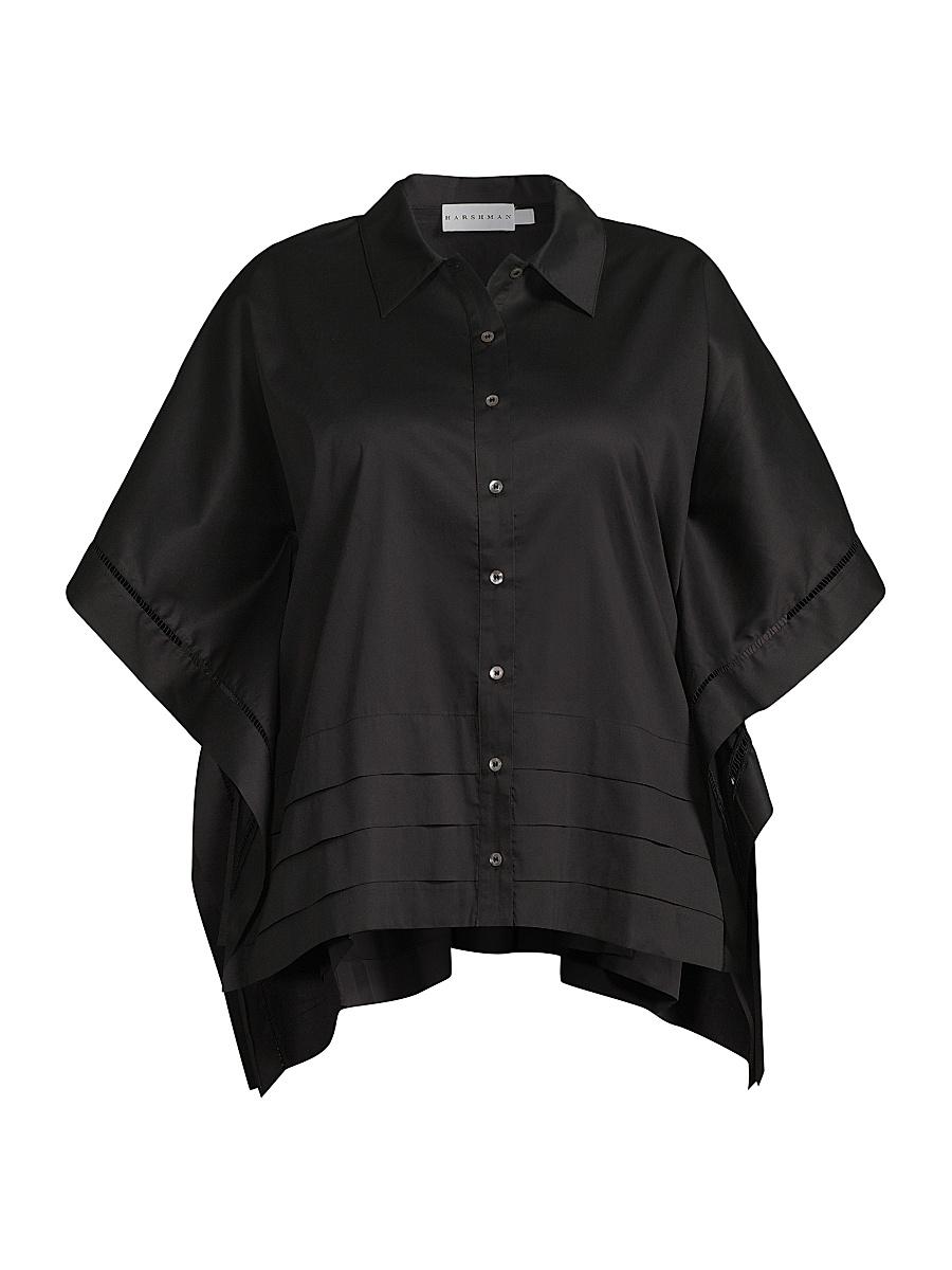 Crafted of cotton, this breezy button-front Harpa shirt from Harshman is designed with a spread collar, cape sleeves, and a tiered hem. Spread collar Elbow-length cape sleeves Button-front closure 100% cotton Machine wash Imported. Salon Z - Salon Z Collections > Harshman > Saks Fifth Avenue > Barneys. Harshman. Color: Black. Size: 14.