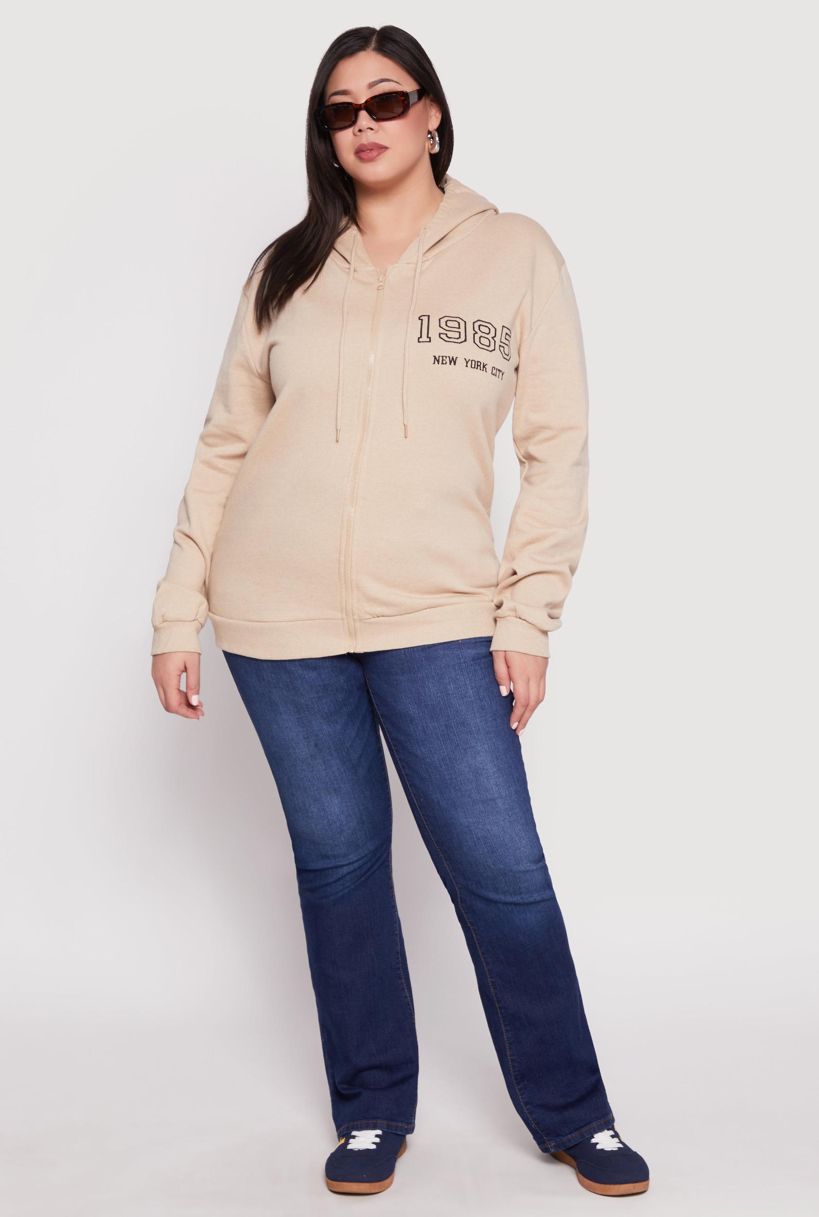 Womens Plus Size 1985 New York City Bear Zip Front Hoodie
