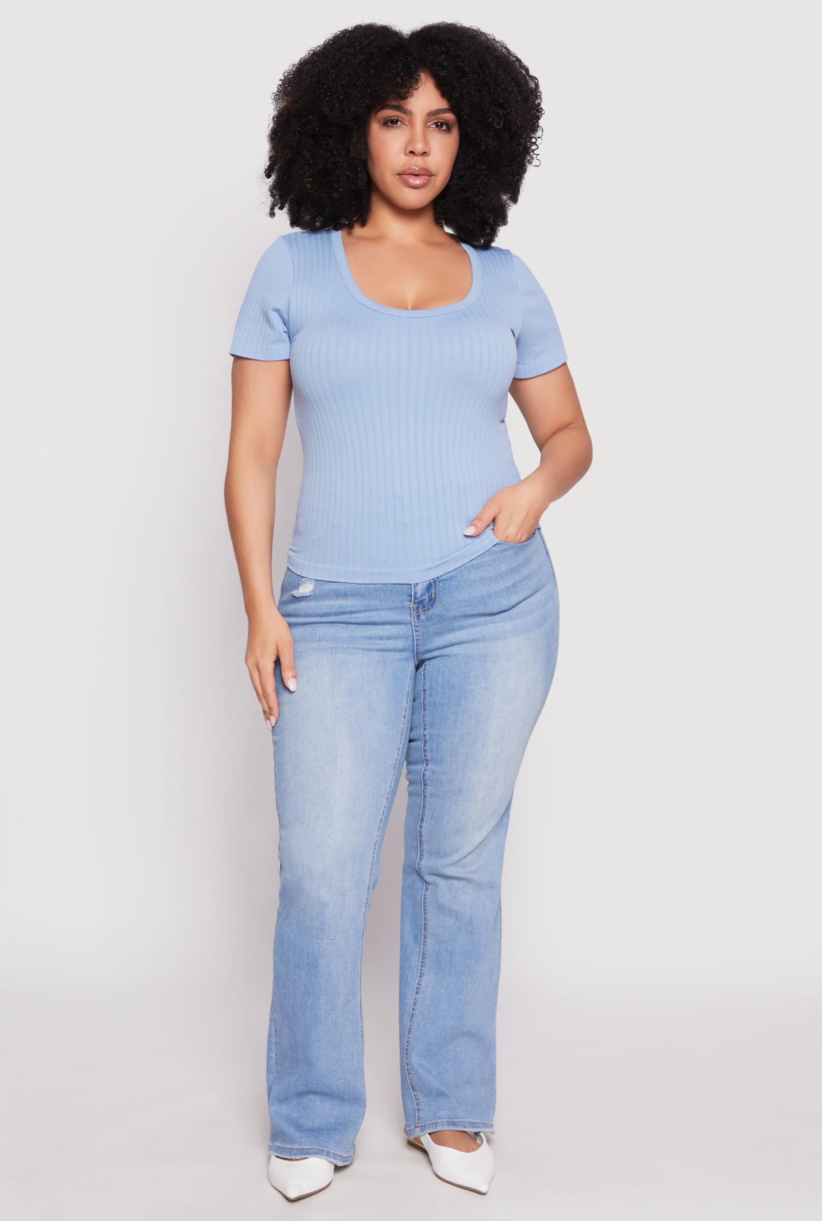 Womens Plus Size Basic Ribbed Knit Seamless Top