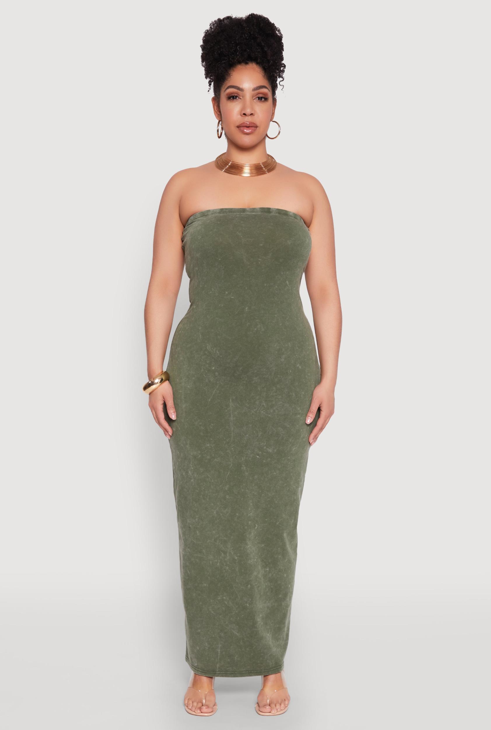 Womens Plus Size Daisy Mineral Wash Maxi Tube Dress