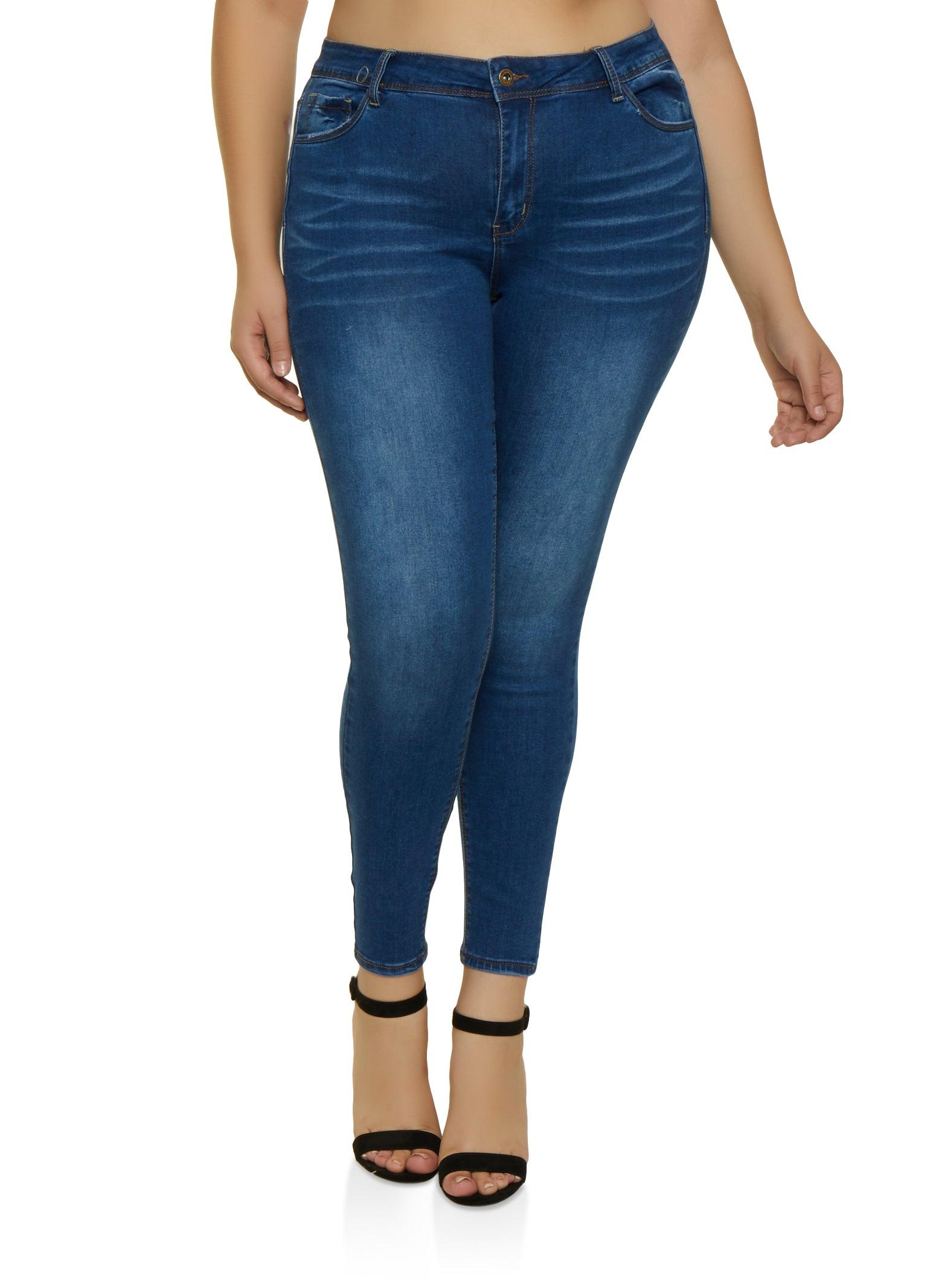 Womens Plus Size WAX Distressed Skinny Leg Jeans