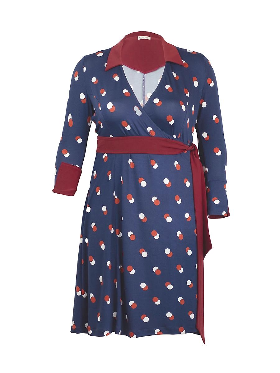 ONLY AT SAKS.COM. Printed with a circle motif, Kiyonnas Sophisticate wrap dress showcases a contrast collar and waist self-tie. This flattering style flaunts princess seams and a snap front creating a unique design. Spread collar, surplice neck Long sleeves, button cuffs Self-tie wrap 95% polyester/5% spandex Machine wash Made in USA of Imported fabric SIZE & FIT About 42.75 from shoulder to hem. Salon Z - Salon Z Collections > Kiyonna > Saks Fifth Avenue > Barneys. Kiyonna. Color: Navy Dot Duo. Size: 22.