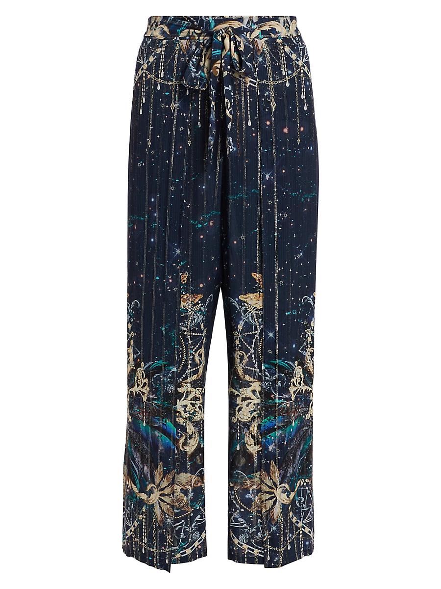Styled with a self-tie-wrapped waist, these relaxed-fit pants from Johnny Was are printed with a unique trompe-loeil Supernova print. Wrap tie waist 98% rayon/2% lurex Hand wash Imported SIZE & FIT Model measurements: 510 tall Model is wearing a US size 4 ABOUT THE BRAND Embracing the ease of a West Coast lifestyle, Johnny Was takes a bohemian mindset to a new level in romantic flowing dresses and tops. The brands signatures include floral prints, embroidery, artisan-inspired stitches and embellishments like beading and tassels. Outerwear And Swimwear - Modern Swim > Johnny Was > Saks Fifth Avenue > Barneys. Johnny Was. Color: Supernova. Size: 22.