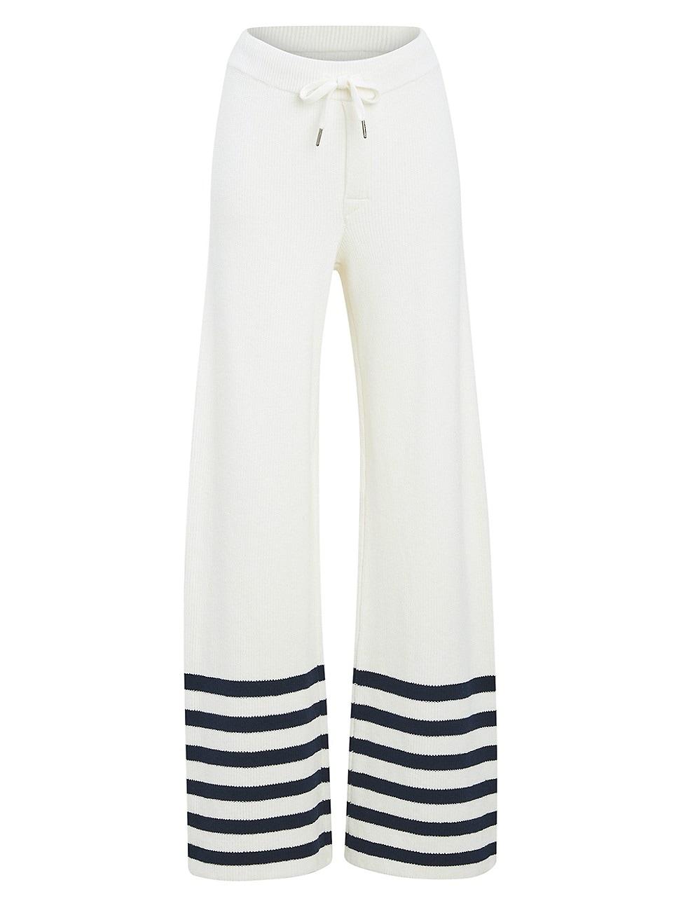 SER.O.YA Poe knit pants featuring a stripe motif Elasticated drawstring waistband Low-rise; sits at the hip Wide legs Full length Pull-on style Cotton Dry clean Imported