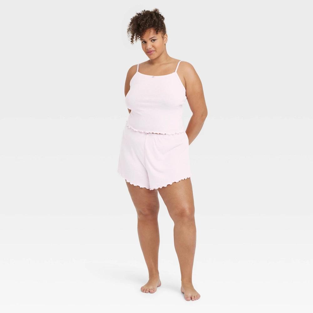 Womens Pointelle Tank Top & Shorts Pajama Set - Colsie Pink XXL