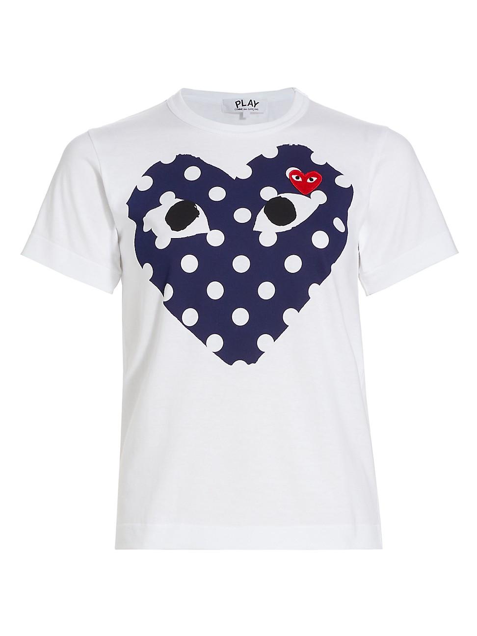 Crafted of soft cotton jersey, Comme Des Garcons PLAYs T-shirt features a whimsical polka dot heart graphic. Crewneck Short sleeves Pullover style 100% cotton Hand wash Made in Japan SIZE & FIT About 25 from shoulder to hem Model measurements: 510 tall Model is wearing a US size Small ABOUT THE BRAND From the artistic mind of Comme des Garons designer Rei Kawakubo comes a casual, playful line for women, men and kids. The signature red heart, complete with instantly recognizable wide eyes, is emblazoned on striped and solid T-shirts, knitwear and sneakers. Advanced Designer - Designer Collections > Comme Des Garons Play > Saks Fifth Avenue > Barneys. Comme des Garons PLAY. Color: White. Size: XS.
