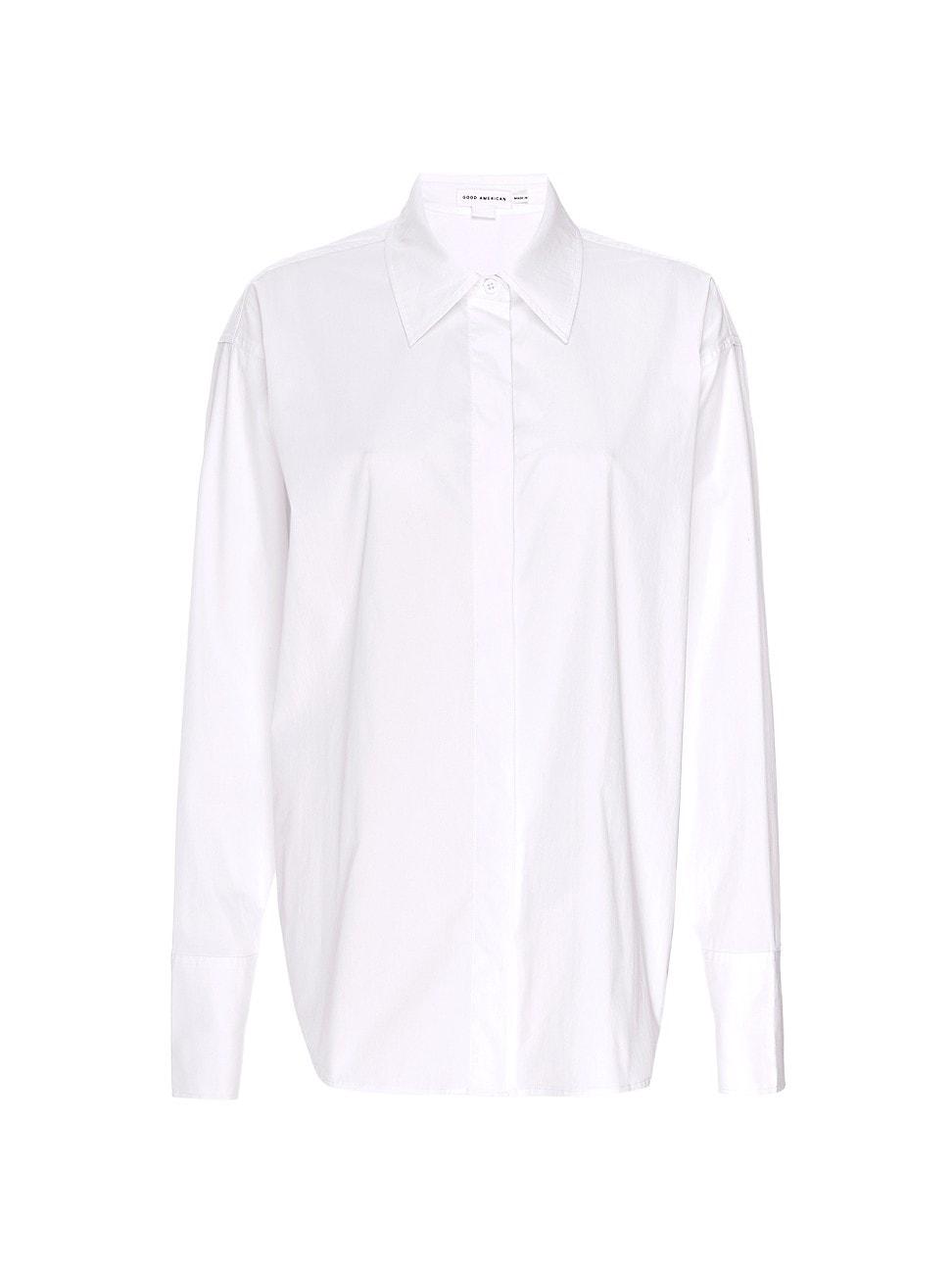 Crafted of blended poplin cotton, Good Americans shirt showcases a classic oversized fit with a spread collar and long sleeve with button cuffs. Spread collar Long sleeves, button cuffs Button-front closure 65% cotton/33% nylon/2% elastane Machine wash Imported SIZE & FIT About 28.75 from shoulder to hem Model measurements: 510 tall Model is wearing a US size Small ABOUT THE BRAND GOOD AMERICAN Cofounders Khlo Kardashian and Emma Grede launched the denim and ready-to-wear label in 2016 with the goal of bringing body positivity to mainstream fashion. From figure-hugging bodysuits to faux leather pants, the all-inclusive line brings an edge and fresh perspective to everyday essentials. Contemporary Sportswear - Denim And Bottoms > Good American > Saks Fifth Avenue > Barneys. Good American. Color: White. Size: Large.