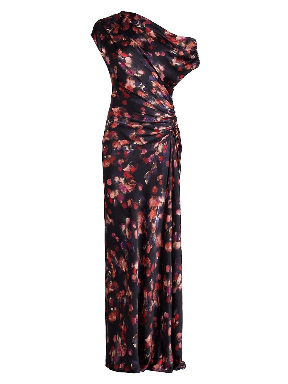 Crafted of stretch silk with an abstract print, this Poppy gown from A.L.C. is styled with an asymmetric neckline and a ruched bodice. Asymmetric neck Sleeveless Ruched bodice Side zip closure 92% silk/8% Lycra spandex Dry clean Imported SIZE & FIT About 60.75 from shoulder to hem Model measurements: 510 tall Model is wearing a US size 4 ABOUT THE BRAND A born and raised New Yorker, founder Andrea Lieberman kickstarted her fashion career as a celebrity stylist, responsible for some of the most notable A-list red carpet appearances. She launched her line in 2009, based on her experience in making women feel powerful and confident. Her collections repeatedly feature modern tailoring, separates constructed in clean lines and the occasional splash of vibrant colors and patterns. Contemporary Sportswear - Workshop > A.l.c. > Saks Fifth Avenue > Barneys. A.L.C.. Color: Navy Multi. Size: 8.