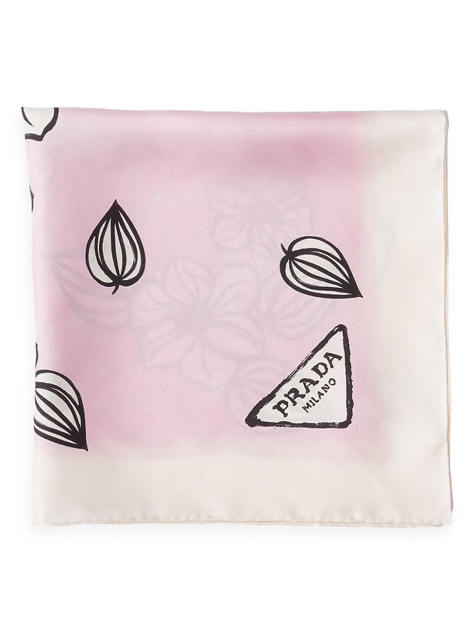 A floral motif embellishes this twill scarf decorated with the printed Prada logo. Camelia print Printed logo Silk twill Imported SIZE 55 W x 55 H. Lsd Handbags - Prada Handbags Access > Prada > Saks Fifth Avenue > Barneys. Prada. Color: Pink.