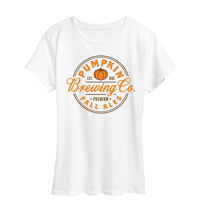 Get ready for spooky season in this womens pumpkin brewing co Halloween tee. Get ready for spooky season in this womens pumpkin brewing co Halloween tee. FEATURES Short sleeves CrewneckFABRIC & CARE Solid: cotton; Heather: cotton, polyester Machine wash Imported Size: X Large. Color: White. Gender: female. Age Group: adult. Pattern: Graphic.