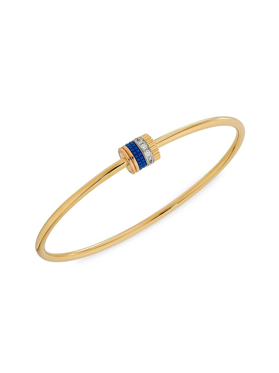 From the Quatre Collection. Made of 18K yellow gold, Boucherons bangle features a four-ring screw clasp composed of 18K yellow, rose, and white gold and blue HyCeram. This elegant accessory is accented with pav white diamonds for a touch of sparkle. Diamonds, 0.11 tcw 18K yellow, rose, and white gold/blue HyCeram Screw clasp Made in Italy SIZE About 2.5 diameter ABOUT THE BRAND Parisian jewelry designer Frdric Boucheron got his start when he opened a Place Vendme jewelry boutique in 1858, specializing in high jewelry and watchmaking, and soon came to be known as a visionary in his realm. Generations later, the global label has maintained its reputation for prestige through the bold and innovative character of its pieces. Fine Jewelry - Fine Jewelry > Boucheron > Saks Fifth Avenue > Barneys. Boucheron. Color: Yellow Gold. Size: Medium.