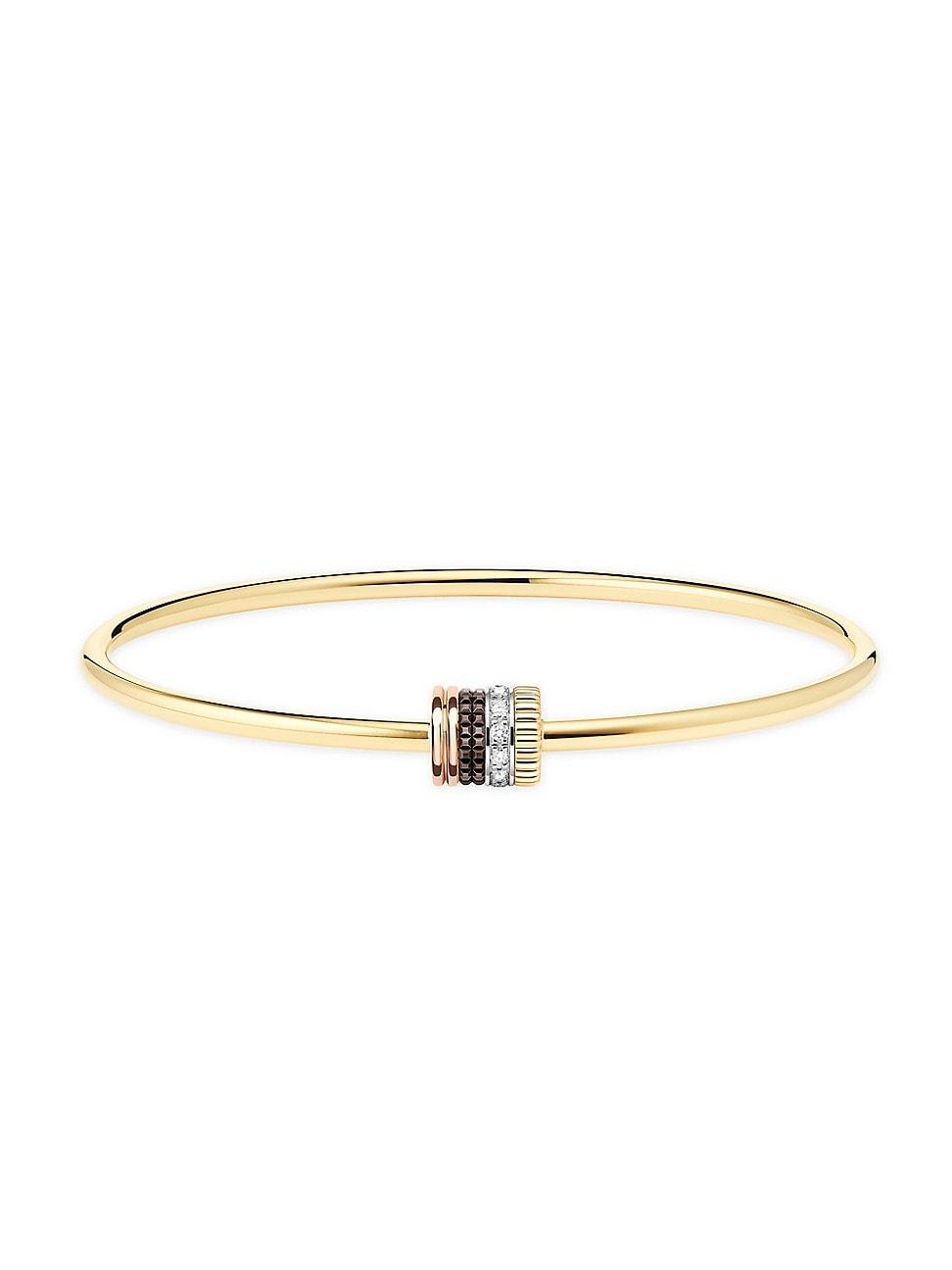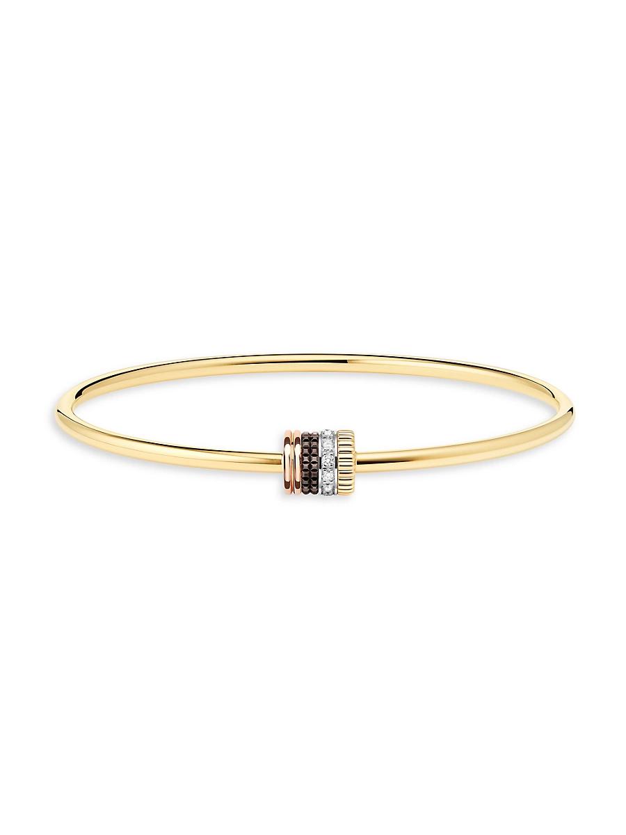 From the Quatre Collection. Made of 18K yellow gold, Boucherons Quatre Classique bangle features a four-ring screw clasp composed of 18K yellow, pink, and white gold and brown PVD. This elegant accessory is accented with pav white diamonds for a touch of sparkle. Diamonds, 0.11 tcw 18K yellow, pink, and white gold/brown PVD Screw clasp Made in Italy SIZE Diameter, about 2.5. Fine Jewelry - Fine Jewelry > Boucheron > Saks Fifth Avenue > Barneys. Boucheron. Color: Yellow Gold. Size: Medium.