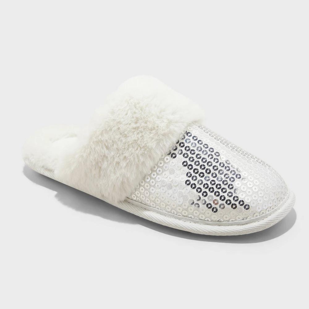 Add a touch of twinkle and warmth to your feet with these Rae Sequin Scuff Slippers from Auden. These scuff slippers are designed with a solid-color closed-toe upper embellished with sequins, and theyre finished with faux-fur trim and cozy lining for all-day comfort. The slip-on style with an open back plus an indoor/outdoor outsole for all-purpose wear complete the design. Auden: Comfort true to every shape & hue.