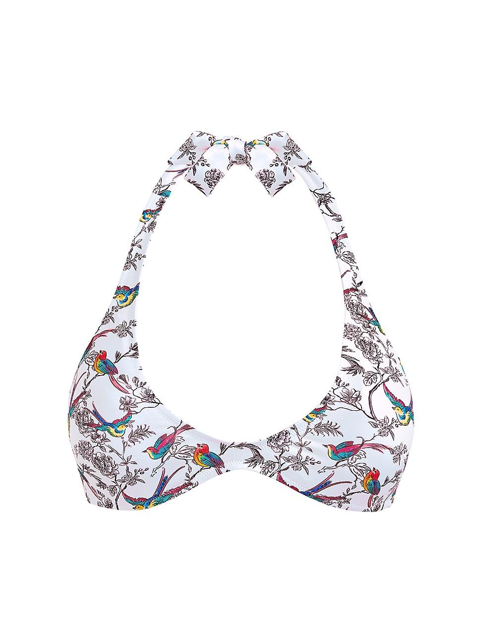 This Vilebrequin bikini top features a rainbow birds print and adjustable tie closures. Halterneck Sleeveless Back tie closure 82% polyamide/18% elastane Machine wash Imported of Italian fabric SIZE & FIT Model measurements: 510 tall Model is wearing a US size Small Please note: Bikini bottom sold separately. Outerwear And Swimwear - Contemporary Swim > Vilebrequin > Saks Fifth Avenue > Barneys. Vilebrequin. Color: Blanc. Size: Medium.