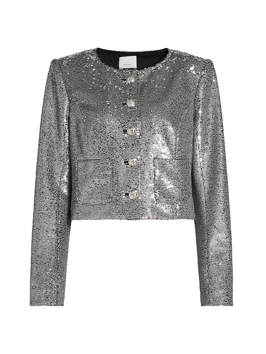 This Randi crop jacket from Cinq Sept is decorated with sparkling sequins. Round neck Long sleeves Side patch pockets Button-front closure 100% polyester Lining: 100% polyester Dry clean Imported SIZE & FIT About 19 from shoulder to hem Model measurements: 510 tall Model is wearing a US size 4 ABOUT THE BRAND Inspired by the radiant, magical hours between 5 and 7 PM-which is what the labels French name translates to-founder Jane Siskin designs sophisticated, feminine pieces for both workweek and the weekend. The designers silhouettes also play with volume and eye-catching trimmings-perfect for cocktails or a special night out. Contemporary Sportswear - Cinq A Sept > Cinq Sept > Saks Fifth Avenue > Barneys. Cinq Sept. Color: Silver. Size: 16.