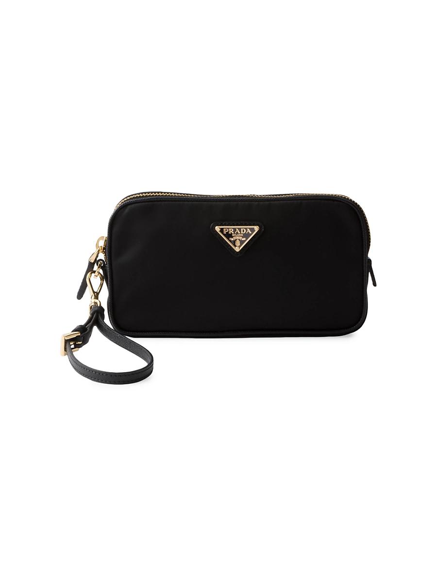 This versatile and refined pouch with a minimalist design is made of Re-Nylon, the sustainable evolution of a distinctive material of Prada collections. The style combines the functionality of regenerated nylon with refined details like the leather wristlet and the gold-tone hardware. The enameled metal triangle logo embellishes the accessory with an iconic touch. For sustainable care to preserve the products characteristics and reduce microfiber shedding, we recommend not washing the item too often. Let the product air out after every use and have it dry cleaned at a specialized ecological dry cleaners. Zipper closure Enameled metal triangle logo Removable leather wristlet Re-Nylon lining Imported SIZE 17.5W x 10.0H x 3.5L. Lsd Handbags - Prada Handbags Access > Prada > Saks Fifth Avenue > Barneys. Prada. Color: Brown.