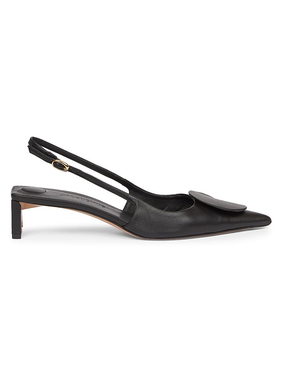 Jacquemus Les Sandales Regalo slingback pumps are crafted in Italy from lamb leather. The pair features a buckle closure. Point toe Buckle closure Leather upper Leather lining Leather insole Leather sole Made in Italy. Womens Shoes - Advanced Womens Designe > Jacquemus > Saks Fifth Avenue > Barneys. Jacquemus. Color: Black. Size: 11.