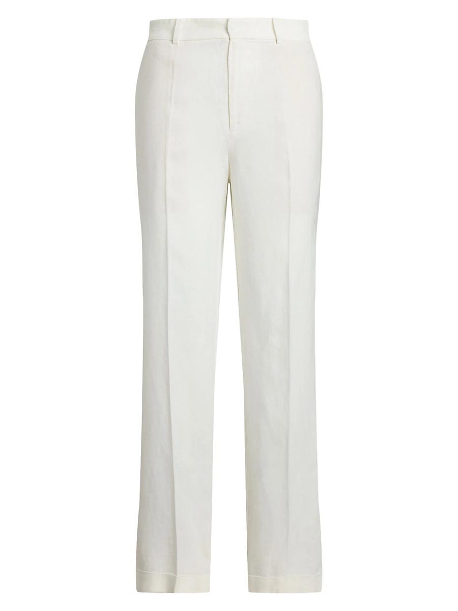 Cut for a relaxed, straight silhouette, Polo Ralph Laurens linen pants showcase menswear-inspired details like tailored creases, buttoned besom pocketing, and cuffed hems. Band waistband, belt loops Side slash pockets Back besom pockets Zip fly, button closure 100% linen Machine wash Imported SIZE & FIT Rise: about 10.75 Inseam: about 30.5 Leg opening: about 20.75 Model measurements: 510 tall Model is wearing a US size 4 ABOUT THE BRAND Synonymous with classic Americana style, Ralph Lauren started his collection of brands in 1967 with one item-the necktie-under the name Polo. Four years later, he debuted his first womens line, providing a segue to the debut of Ralph Lauren Collection. The epitome of polished dressing, the lines tailored coats, sweaters, trousers and more are both versatile and timeless. Modern Collections - Polo Ralph Lauren > Polo Ralph Lauren > Saks Fifth Avenue > Barneys. Polo Ralph Lauren. Color: Nevis. Size: 16.