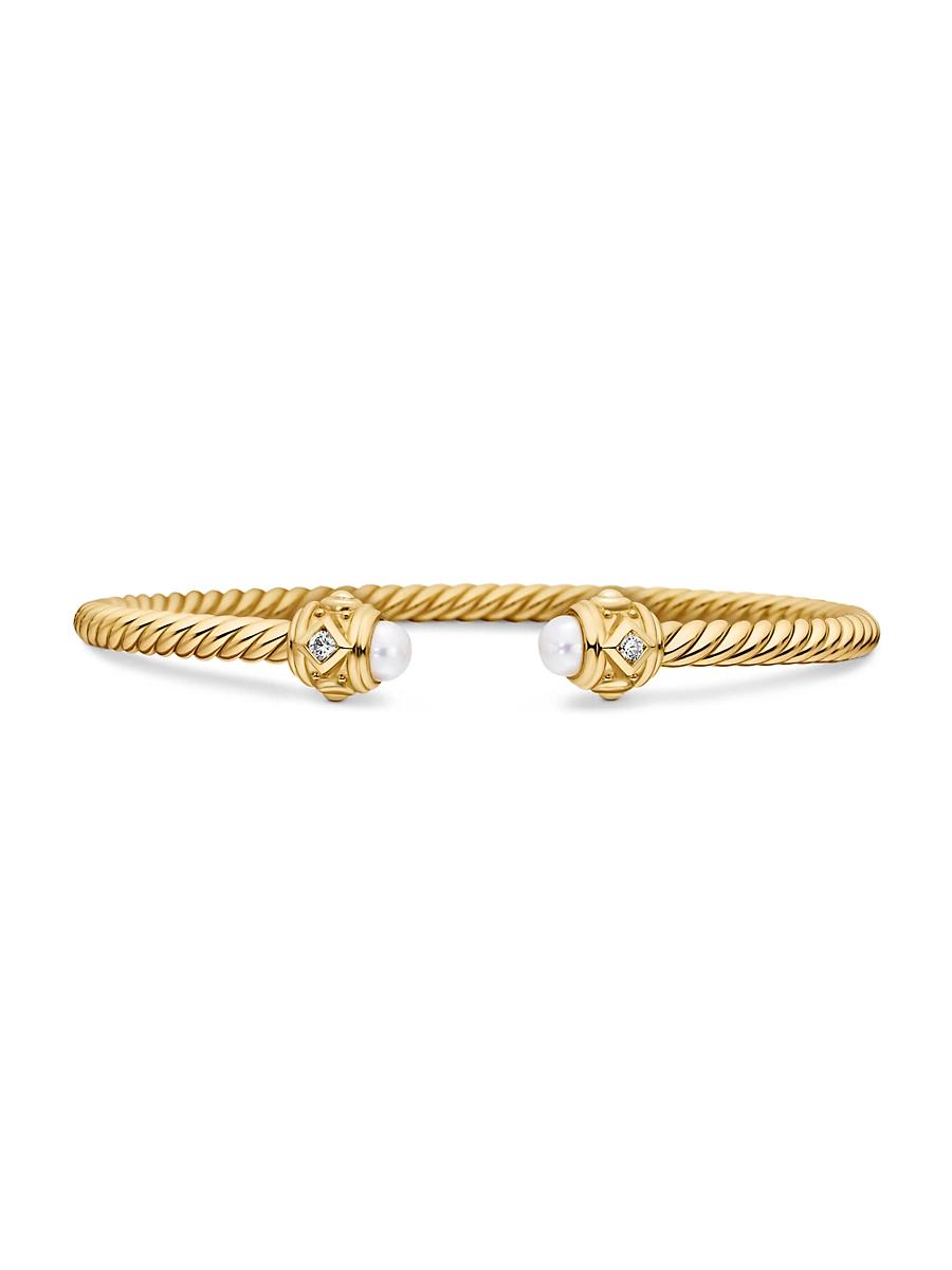 A David Yurman icon, the Renaissance Cable Bracelet combines sculptural form with the brilliant jewel tones found in classical painting. 18-karat yellow gold Cultured freshwater pearls, 4.25-4.75mm Diamonds, 0.07 total carat weight Bracelet, 3.5mm Made in Italy Cablespira is a patented DY construction that is highly flexible and exceptionally comfortable to wear. SIZE Bracelet, 3mm Extra Small wrist circumference, 5-5.5 (12.7-14cm) Small wrist circumference, 5.5-6.0 (14-15.2cm) Medium wrist circumference, 6.0-6.5 (15.2-16.5cm) Large wrist circumference, 6.5-7.0 (16.5-17.8cm) Extra Large wrist circumference, 7.0-7.5 (17.8-19cm) Please note: If you are between sizes, please opt for the larger size. Lsd Jewelry - David Yurman > David Yurman > Saks Fifth Avenue > Barneys. David Yurman. Color: Pearl. Size: Large.