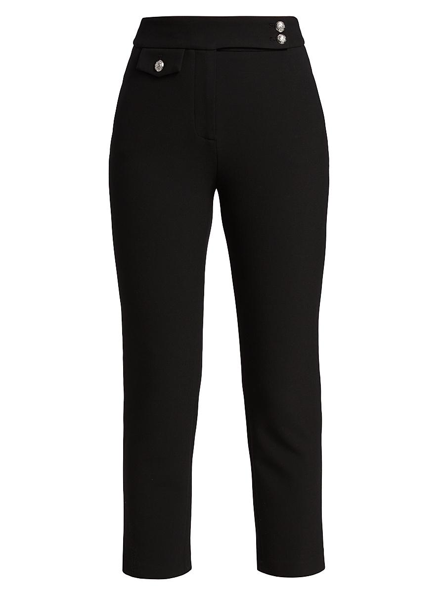 Cut in an ankle crop silhouette, these slim-leg crepe pants are complete with luxe embossed button closures. Banded waist with button closures Zip fly Front flap pocket with button closure Front slash pockets Back welt pockets Silvertone hardware Lining: 100% polyester 63% polyester/27% viscose/7% cotton/3% elastane Dry clean Made in USA SIZE & FIT Model measurements: 510 tall Model is wearing a US size 4 ABOUT THE BRAND Veronica Beard was founded by sisters-in-law Veronica Miele Beard and Ver