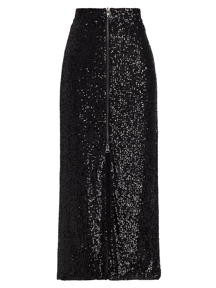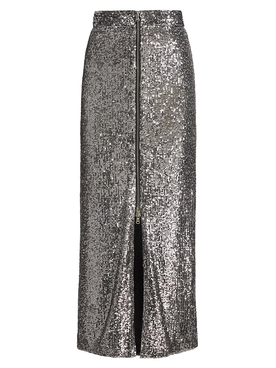 Shimmering with glamorous sequins, Nonchalant Labels Rhea maxi skirt showcases a defined banded waist and adjustable zip front and slit. Banded waist Zip-front closure 100% polyester Dry clean Imported SIZE & FIT About 42.5 long Model measurements: 510 tall Model is wearing a US size Small. Contemporary Sportswear - Trend > Nonchalant Label > Saks Fifth Avenue > Barneys. Nonchalant Label. Color: Silver. Size: XS.