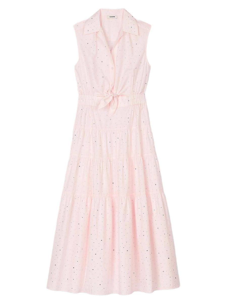 Sleeveless maxi dress with shirt collar, button-up tie-front, a flared, tiered skirt and all-over rhinestones. Sandro Womens maxi dress Shirt collar Sleeveless All-over rhinestones Tie-front Main fabric: 100% cotton Imported SIZE & FIT Model measurements: 58 Model is wearing a size 36. Lsd Rtw - Sandro > Sandro > Saks Fifth Avenue > Barneys. Sandro. Color: Sky Blue. Size: 4.