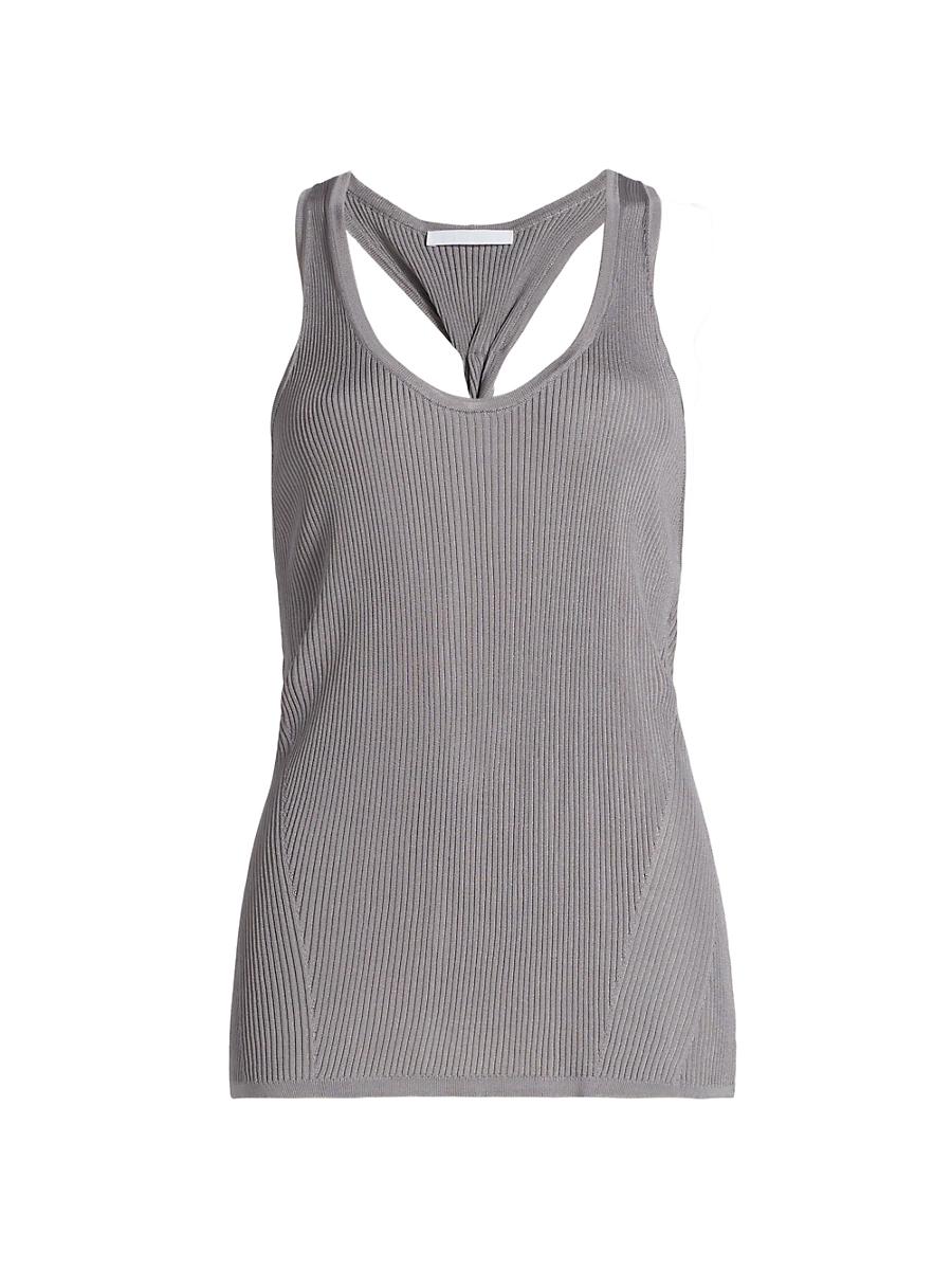 This fitted rib-knit tank from Helmut Lang is designed with an alluring scoopneck and a twisted T-back. Scoopneck Sleeveless Twisted T-back Pulls over 88% viscose/12% nylon Dry clean Imported SIZE & FIT About 25 from shoulder to hem Model measurements: 510 tall Model is wearing a US size Small. Contemporary Sportswear - Helmut Lang > Helmut Lang > Saks Fifth Avenue > Barneys. Helmut Lang. Color: Grey Lavender. Size: Large.