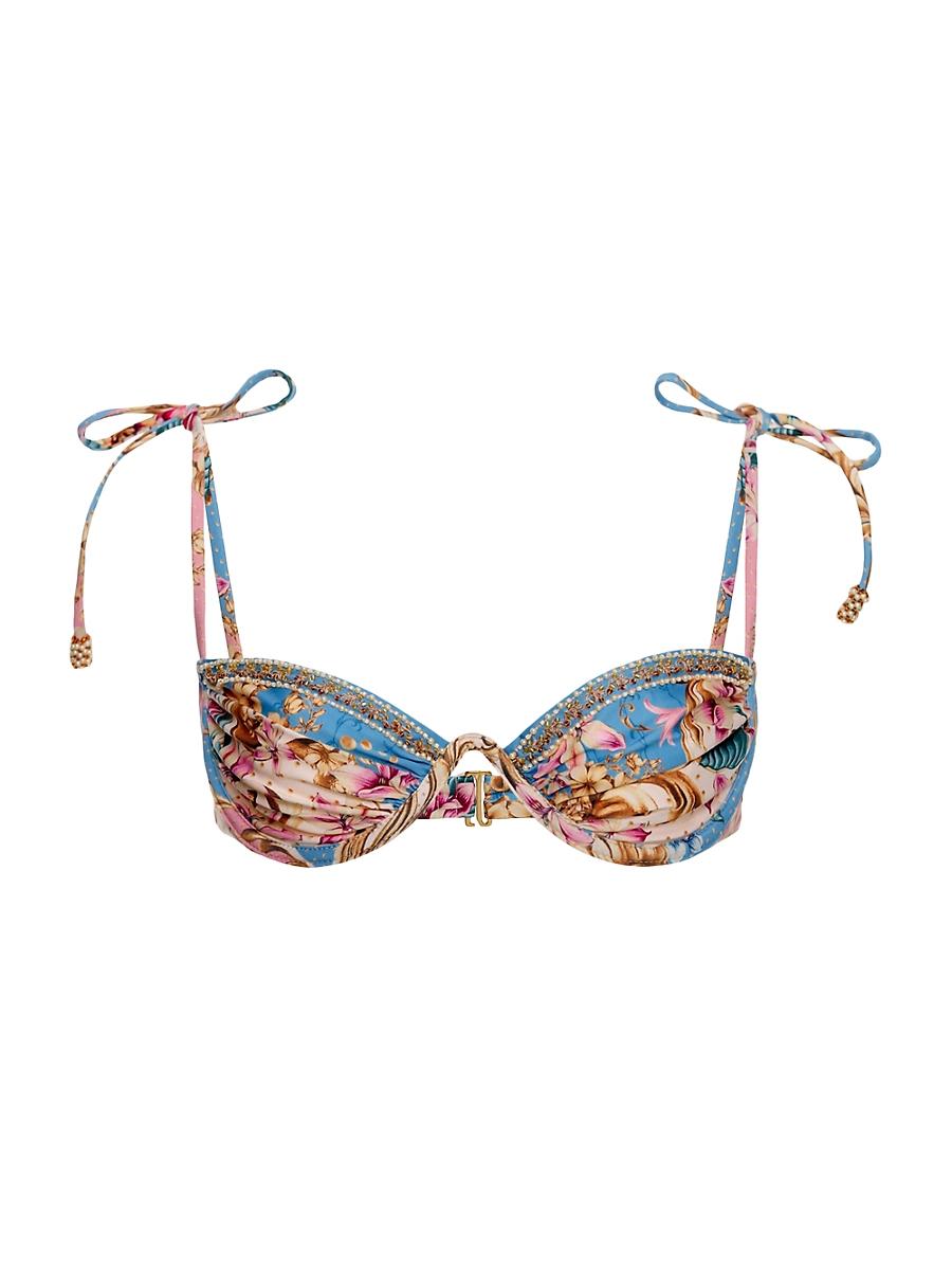 From the Riveria Radiance Collection. Agua Benditas Donna bikini top is styled with a floral print. Sweetheart neck Spaghetti straps Underwire cups Back hook-and-eye closure 81% polyester/19% elastane Lining: 88% polyester/12% spandex Hand wash Imported SIZE & FIT Model measurements: 510 tall Model is wearing a US size Small. Outerwear And Swimwear - Contemporary Swim > Agua Bendita > Saks Fifth Avenue > Barneys. Agua Bendita. Size: Large.