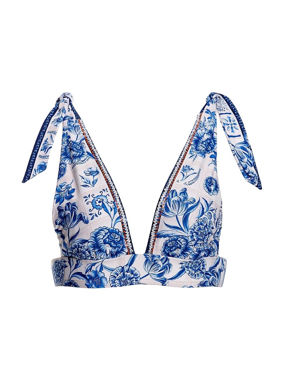 From the Riveria Radiance Collection. Agua Benditas Laurie Azure bikini top is decorated with a floral print and designed with a deep V-neck and shoulder straps. V-neck Shoulder straps Back hook-and-eye closure 81% polyester/19% elastane Lining: 88% polyester/12% spandex Hand wash Imported SIZE & FIT Model measurements: 510 tall Model is wearing a US size Small. Outerwear And Swimwear - Contemporary Swim > Agua Bendita > Saks Fifth Avenue > Barneys. Agua Bendita. Size: Medium.