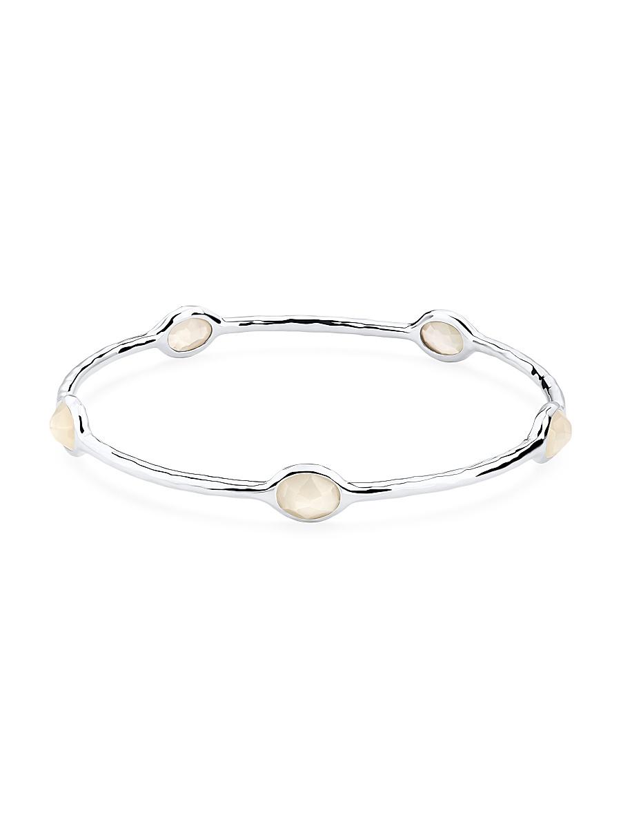 From the Rock Candy Collection. Accented with shimmering mother-of-pearl and rock crystal doublets, Ippolitas elegant Crush bangle is handcrafted of sterling silver completed with a hammered finish. Sterling silver Slips on Imported SIZE About 2.32W x 2.64L ABOUT THE BRAND Italian artist and designer Ippolita Rostagno founded her luxury jewelry house in New York City in 1999. Having studied sculpture and ceramics at the Istituto dArte in Florence, Rostagno embraces organic shapes and a fluid