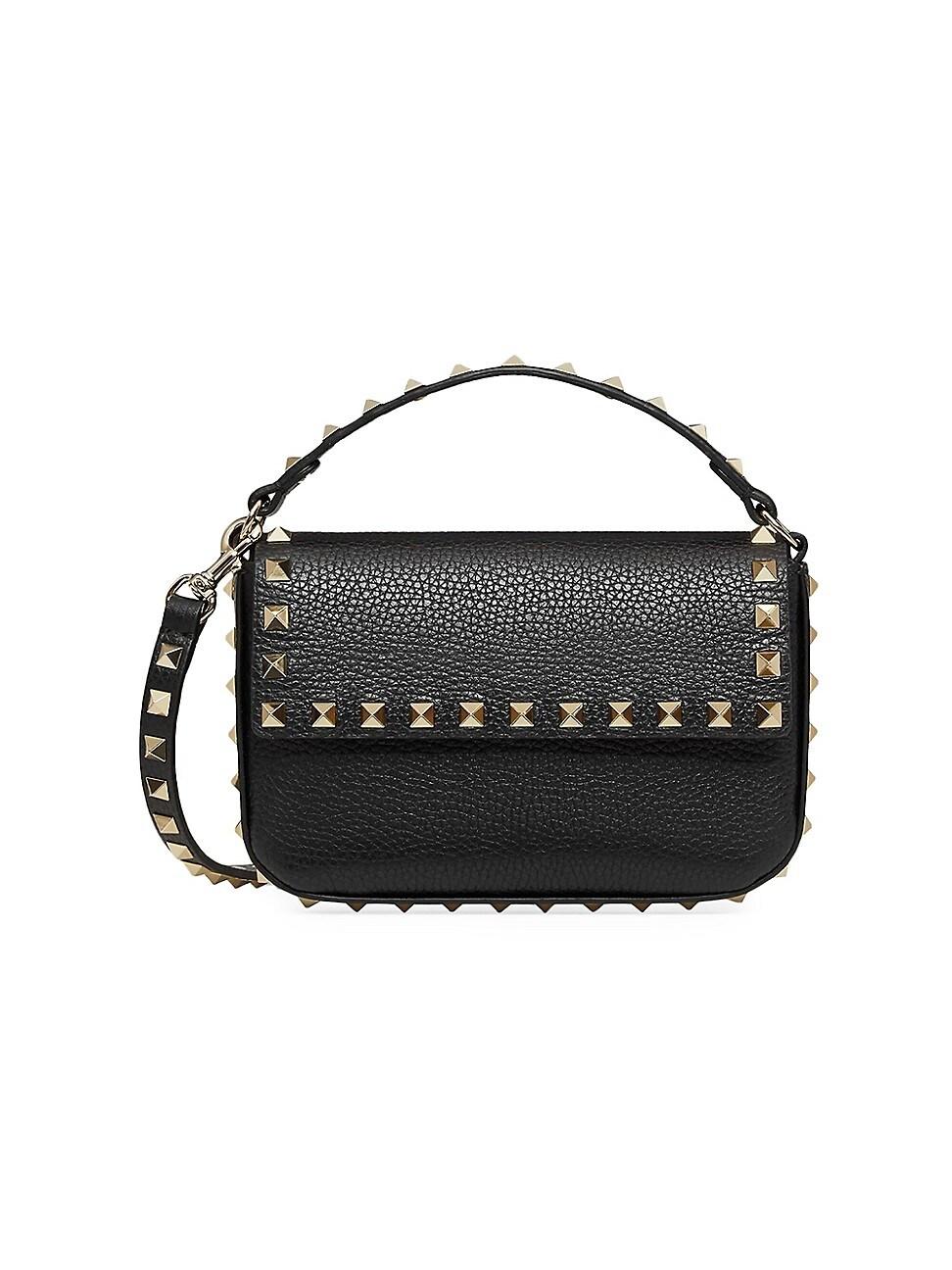 Valentino Garavani Rockstud pouch in grainy calfskin leather. Platinum-finish metal studs and hardware Magnetic button fastening Removable strap Open slip pocket and three card slots Dimensions: W 19 x H 12 x D 3 cm / W 7.5 x H 4.7 x D 1.6 in. Drop length: 51 cm / 20.1 in. Made in Italy. Lsd Handbags - Valentino Handbags > Valentino Garavani > Saks Fifth Avenue > Barneys. Valentino Garavani. Color: Black.