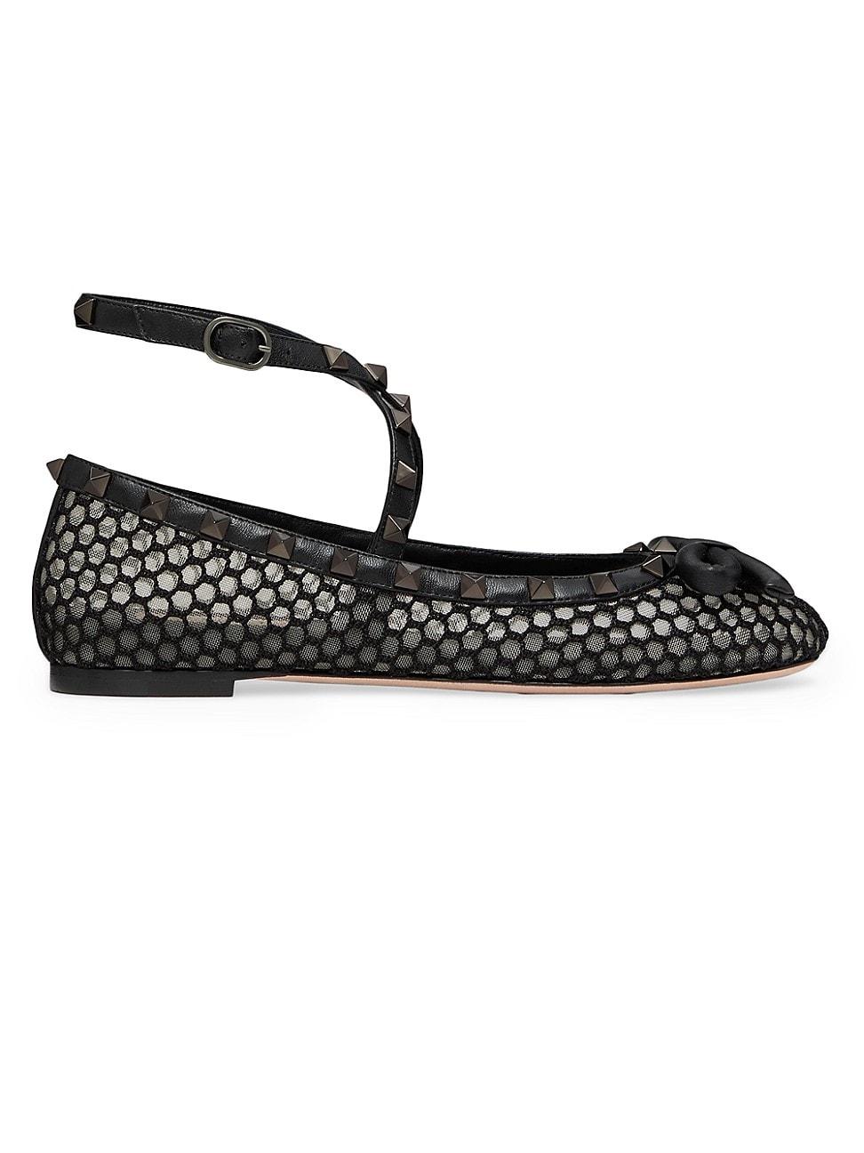 Valentino Garavani Rockstud mesh ballerinas with leather trim. Tone on tone studs Nappa leather bow detail Nappa leather straps and trim Adjustable ankle strap Heel height 5 mm / 0.25 Made in Italy. Lsd Shoes - Valentino Shoes > Valentino Garavani > Saks Fifth Avenue > Barneys. Valentino Garavani. Color: Black. Size: 4.5.
