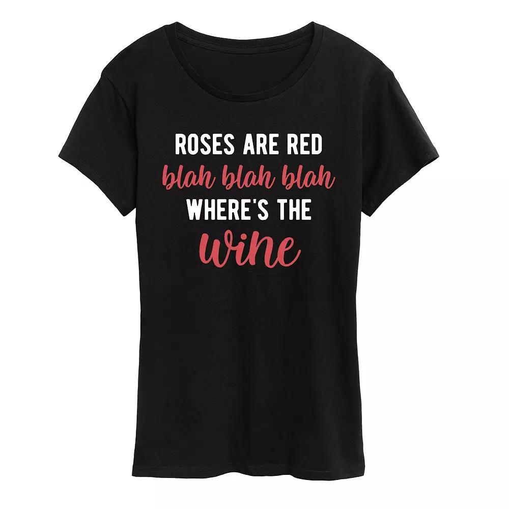 Plus Roses Are Red Blah Blah Wine Graphic Tee, Women's,
