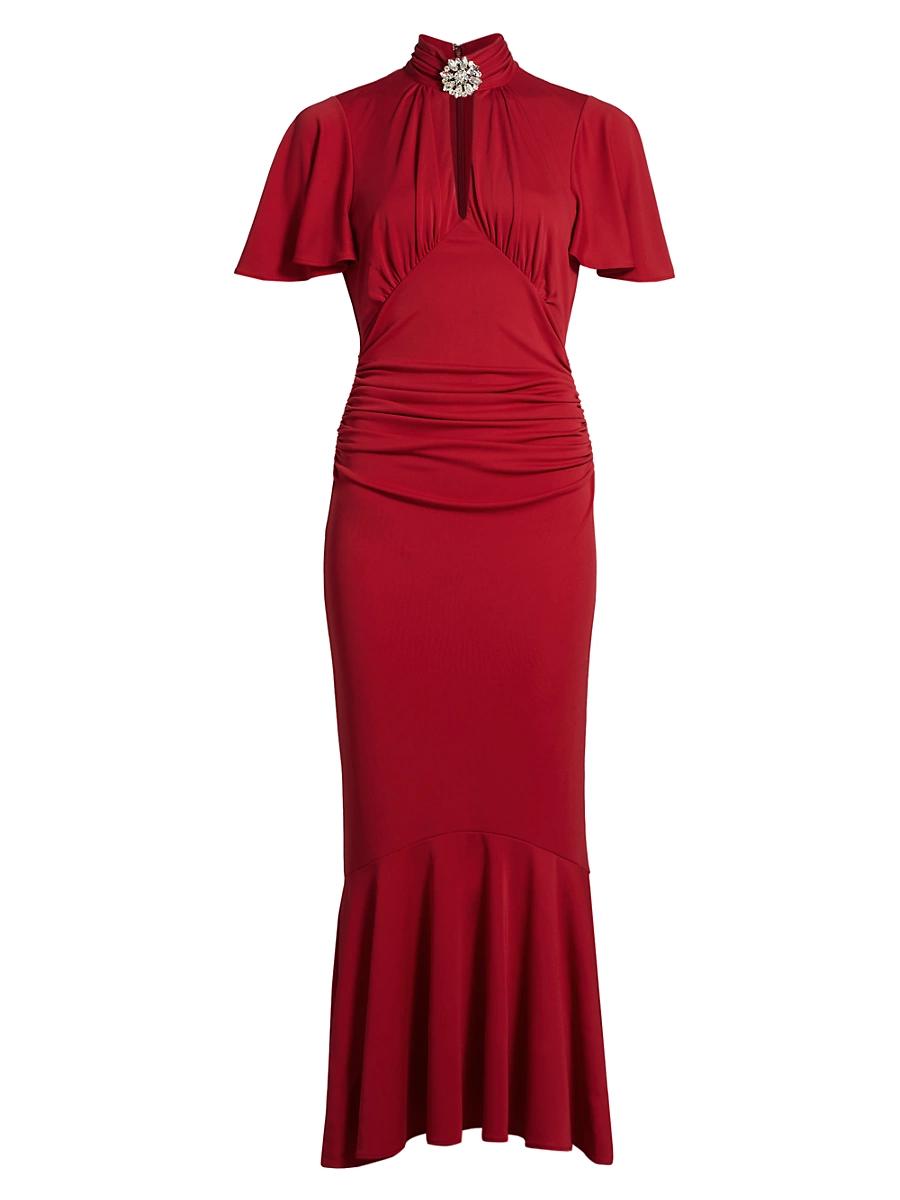 This Rosita midi-dress from Cinq Sept is styled with a mock turtleneck, short flutter sleeves, and a crystal brooch at the neck. Mock turtleneck Short flutter sleeves Chest cut out High-low hem Back zip closure 95% polyester/5% spandex Lining: 100% polyester Dry clean Imported SIZE & FIT About 51.25 from shoulder to hem Model measurements: 510 tall Model is wearing a US size 4 ABOUT THE BRAND Inspired by the radiant, magical hours between 5 and 7 PM-which is what the labels French name translates to-founder Jane Siskin designs sophisticated, feminine pieces for both workweek and the weekend. The designers silhouettes also play with volume and eye-catching trimmings-perfect for cocktails or a special night out. Contemporary Sportswear - Cinq A Sept > Cinq Sept > Saks Fifth Avenue > Barneys. Cinq Sept. Color: Red Currant. Size: 12.