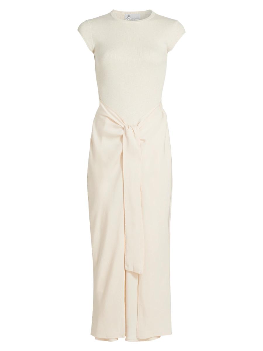 Styled with a refined knit cap-sleeve top, this Rossana dress from dh New York is defined by a tonal combo skirt and relaxed self-tie sash. Crewneck Cap sleeves Self-tie sash Pulls over 33% cotton/27% linen/25% nylon/15% polyester Hand wash Imported SIZE & FIT About 51 from shoulder to hem Model measurements: 510 tall Model is wearing a US size Small. Contemporary Sportswear - Trend > Dh New York > Saks Fifth Avenue > Barneys. dh New York. Color: Macchiato. Size: Medium.