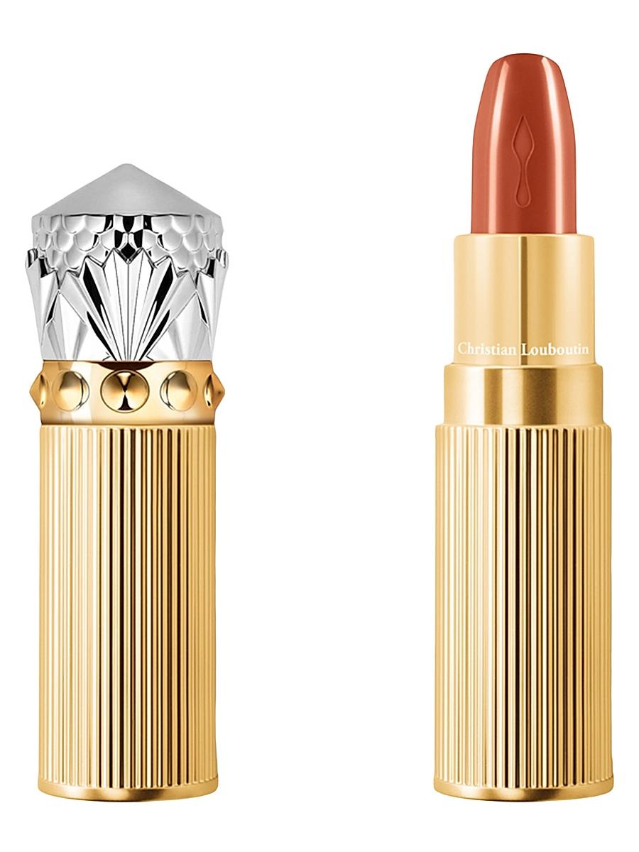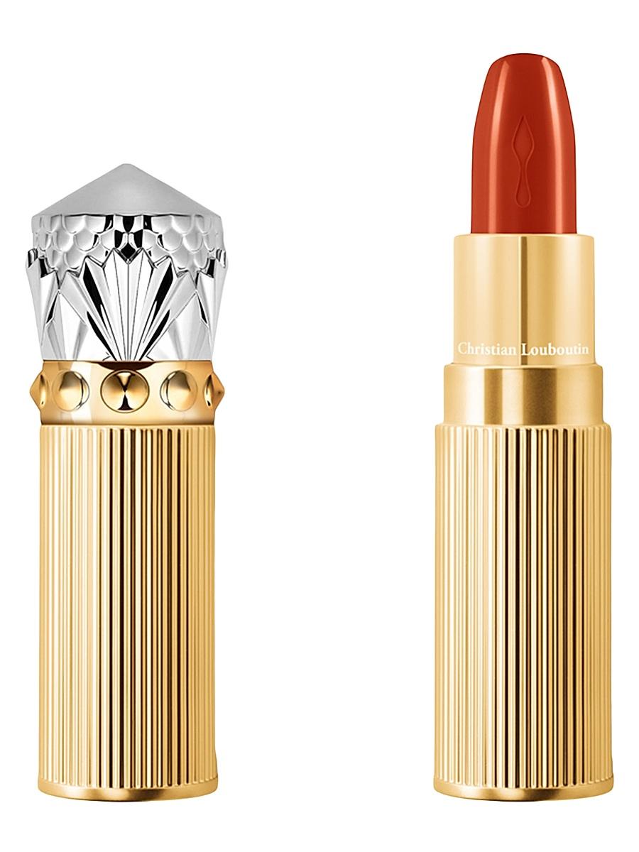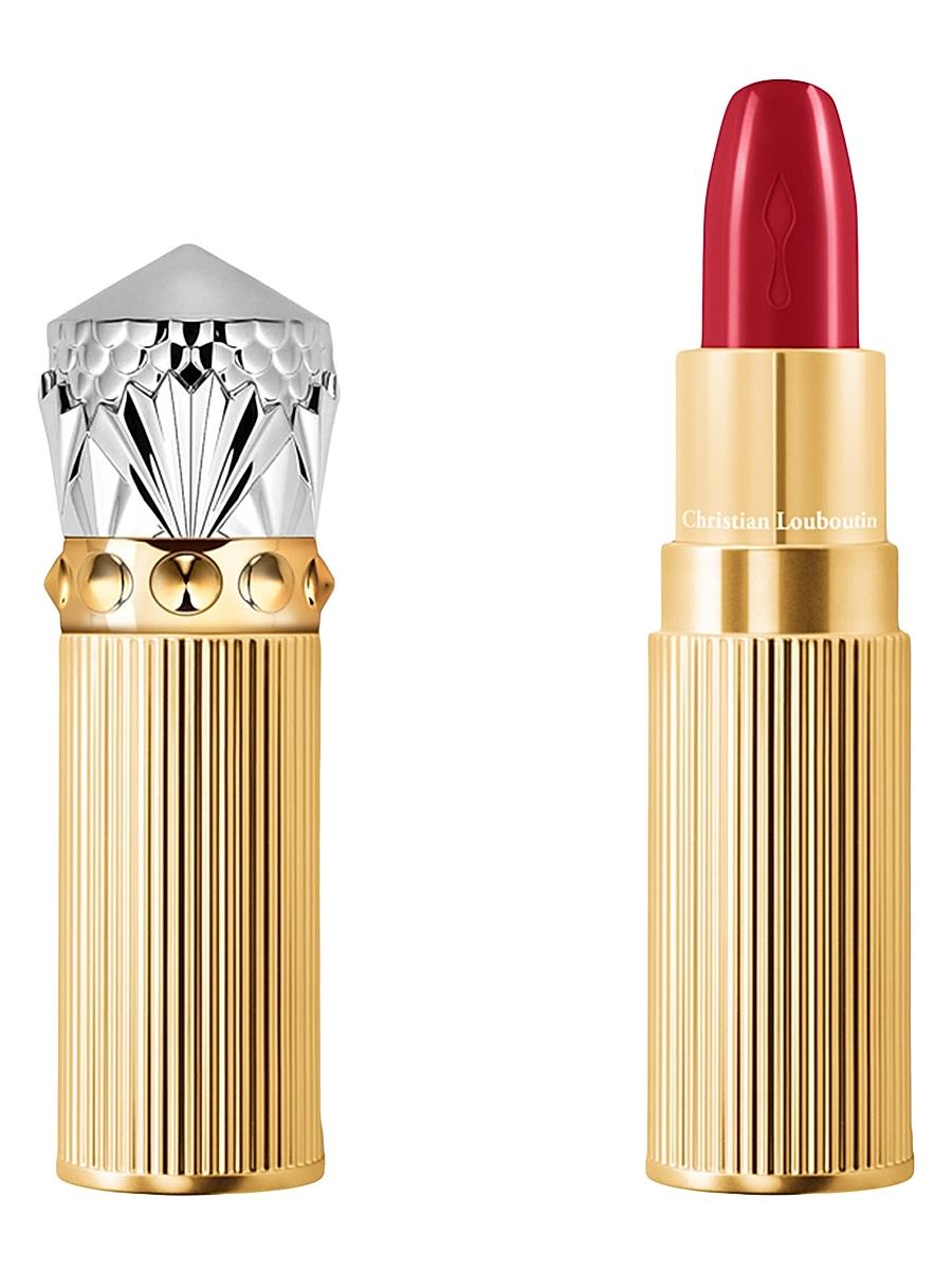 WHAT IT IS From the Rouge Louboutin Collection. More than satin, an ultra-silky creamy texture that offers intense color and luminosity with the perfect glide offering up to 6 hours of luminosity, 6 hours of intensity, and 12 hours of moisture.* The formula is enriched with the glamlips complex (a mix of hyaluronic acid and vitamin b5, exclusive to the brand) paired with pansy extract. Christian Louboutin introduces a new smaller, nomadic format of the iconic lipstick. Encased in a striped gold