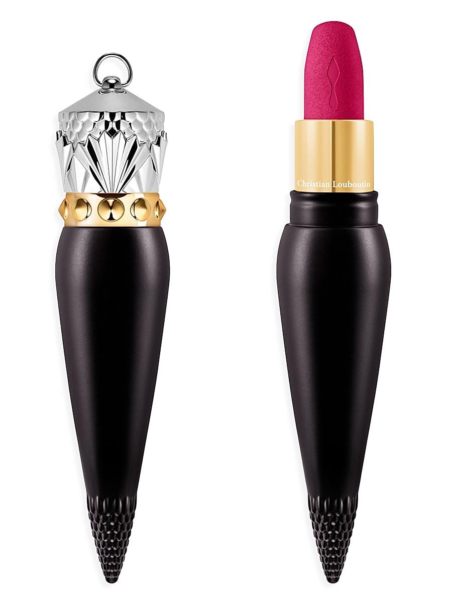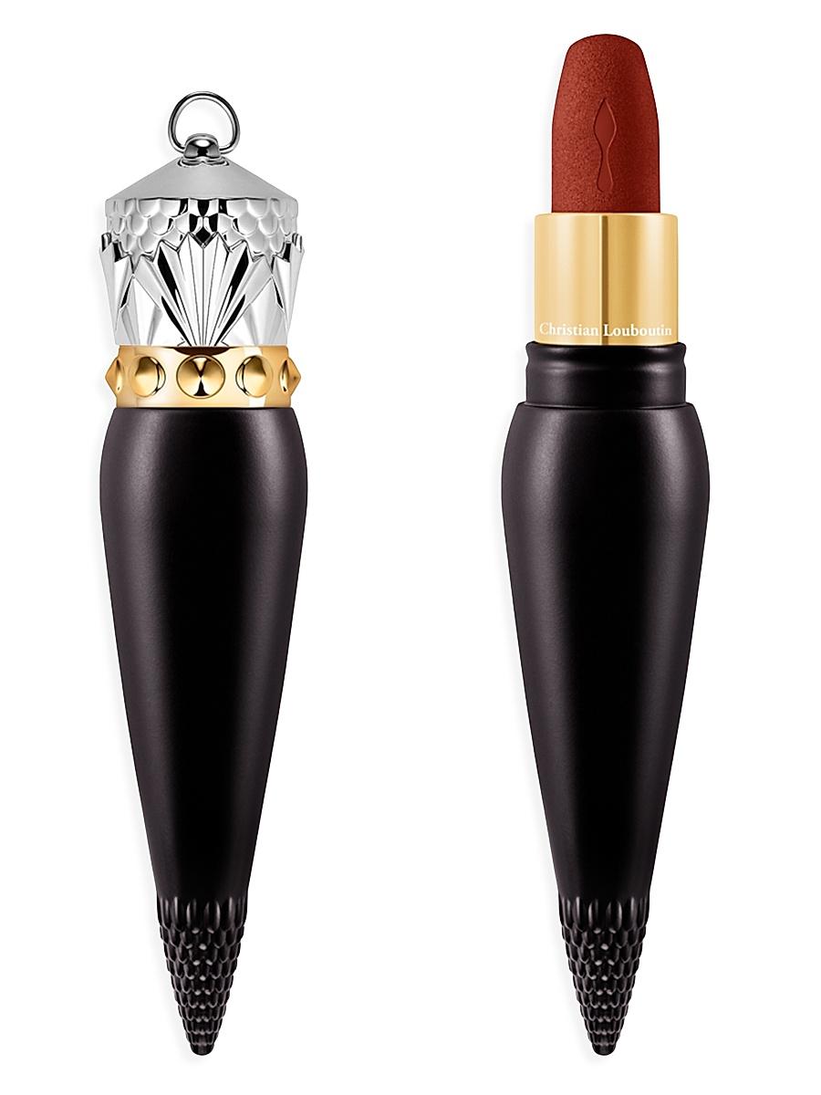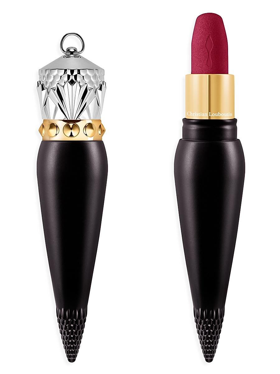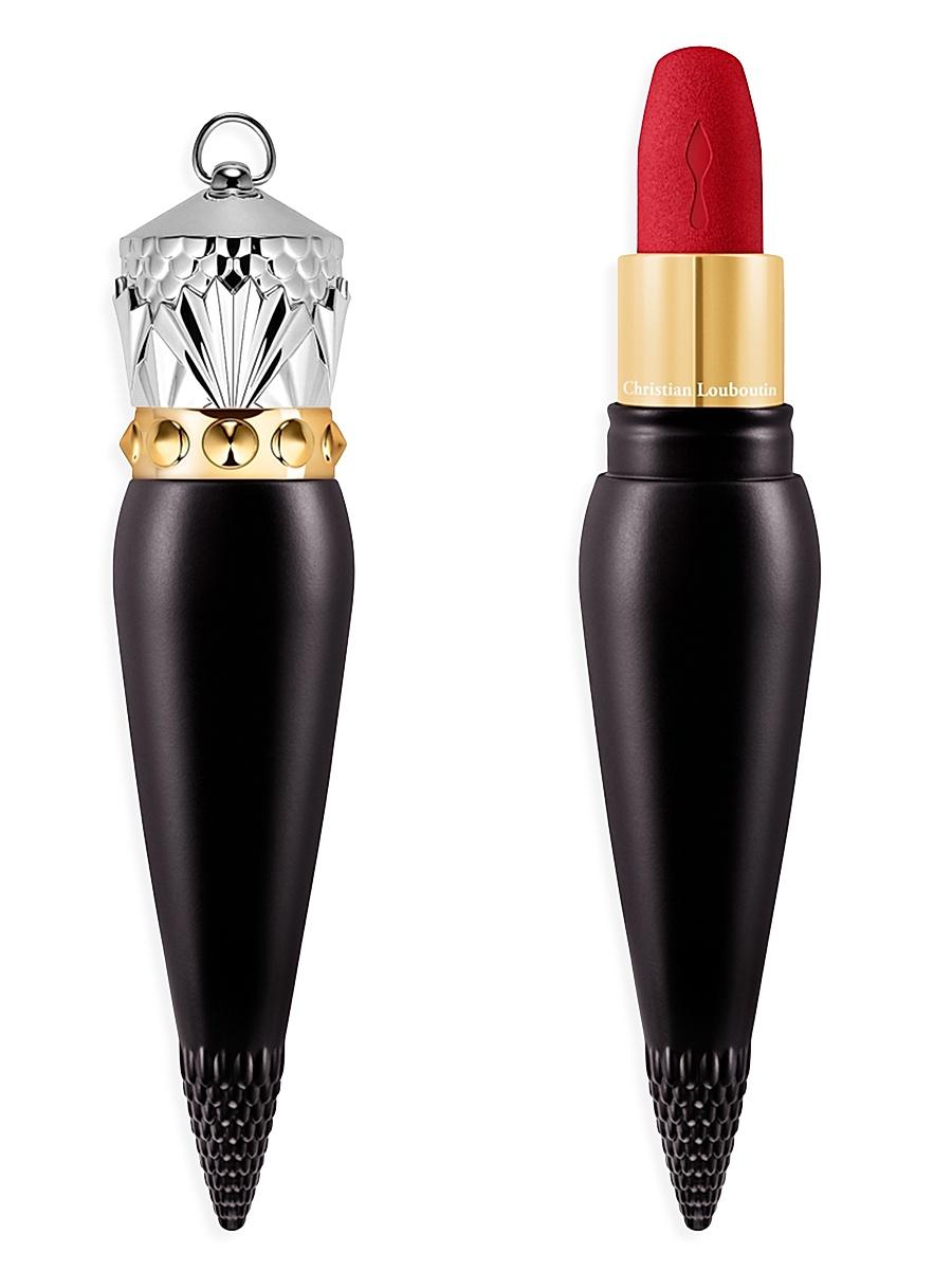 WHAT IT IS Encased in a unique black art deco-inspired bullet, Rouge Louboutin Velvet Matte lipstick is a glamorous matte lip color that delivers intense coverage and non-drying comfort. Dermatologically-tested. 0.13 oz. Made in Italy. WHAT IT DOES More than matte, this ultra-velvety & pigmented lipstick features an easy glide formula & imparts a smoothing effect that offers long wear, hydration, and comfort.The next-generation formula is enriched with pansy flower extract paired with the Glamli