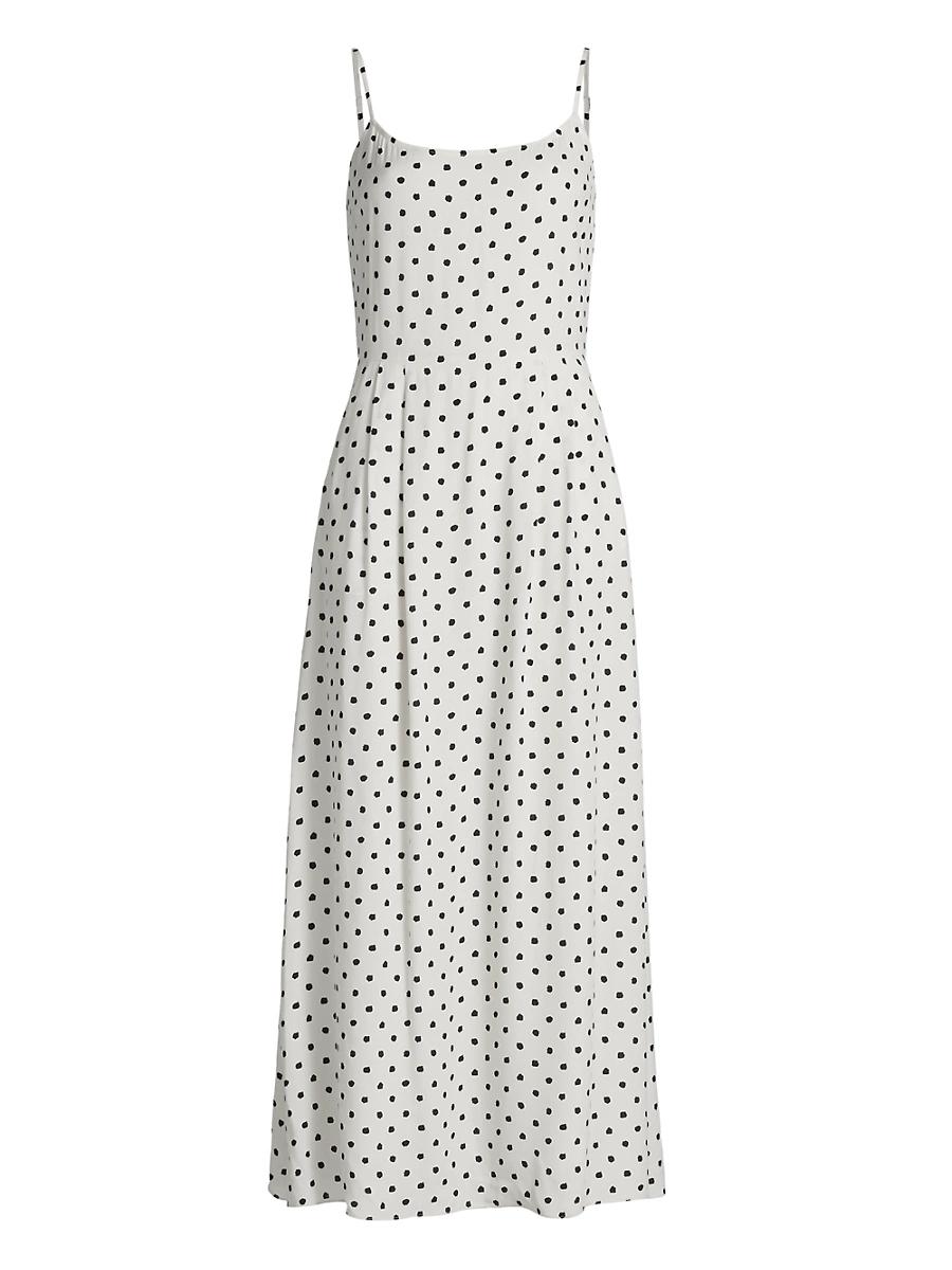 Featuring a structured bust and a straight skirt, the Roce ankle dress from Jenni Kayne is adorned with a spotted print. Scoopneck Adjustable straps Pulls over 100% viscose Dry clean Imported SIZE & FIT About 53.5 from shoulder to hem Model measurements: 510 tall Model is wearing a US size Small. Contemporary Sportswear - Contemporary Lifestyle > Jenni Kayne > Saks Fifth Avenue > Barneys. Jenni Kayne. Color: Ivory Dot. Size: Large.