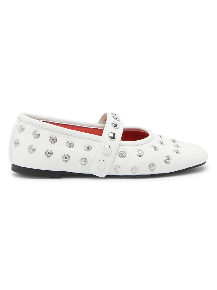Stella McCartneys Ryder Ballet Flats are crafted in Italy and feature an array of gleaming stud details. Round toe Slips on Made in Italy SIZE Heel: about 0.2 (5mm). Womens Shoes - European Designer Shoes > Stella Mccartney > Saks Fifth Avenue > Barneys. Stella McCartney. Color: White. Size: 6.5.