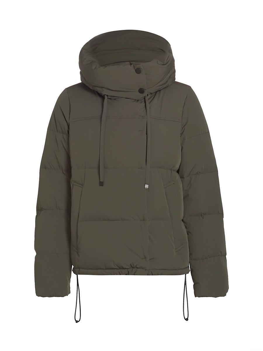 Quilting shapes Mercer Collectives Sammy Puffer, designed with a pillowy hood and cozy down fill. Attached hood Long sleeves Asymmetric zip front with concealed snap placket Waist welt pockets Drawstring hem Lined Polyamide/elastane Fill: 80/20 Duck down/feathers Machine wash Imported SIZE & FIT About 24.5 from shoulder to hem Model measurements: 510 tall Model is wearing a US size Small. Outerwear And Swimwear - G11 Private Label > Mercer Collective > Saks Fifth Avenue > Barneys. Mercer Collective. Color: Olive. Size: Small.