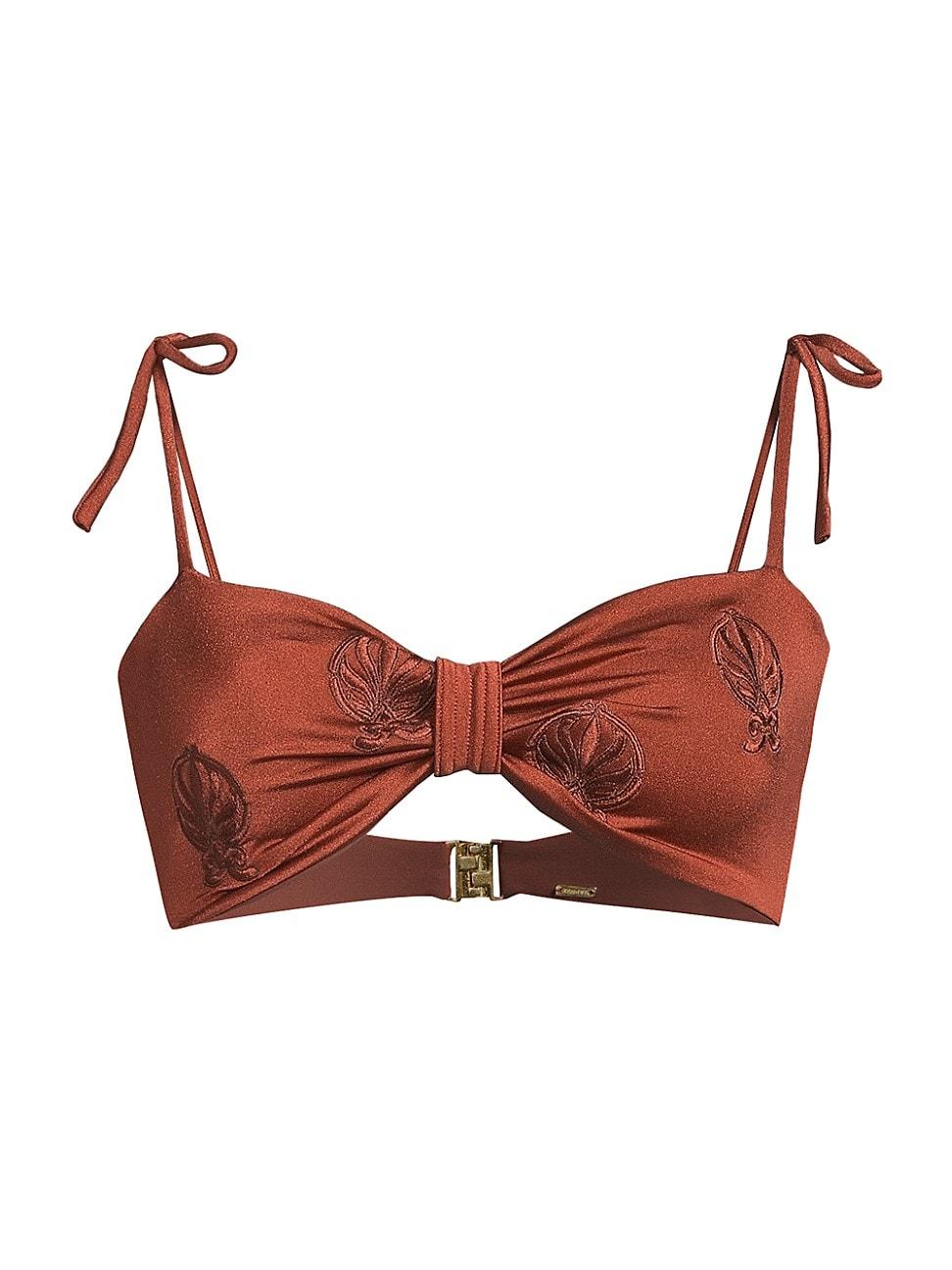 This San Miguel bikini top from Juan de Dios features tonal embroidery, a sweetheart neck, and self-tie straps. Sweetheart neck Self-tie straps Back clasp closure 80% polyamide/20% elastane Machine wash Imported Please note: Bikini bottom sold separately. ABOUT THE BRAND Named after an idyllic bay in Colombia, Juan de Dios masters elegant swimwear with the tenets of Latin American design. Redefining vacation staples, the labels breezy pieces-including dresses, bathing suits and cover-ups-incorporate classic nature-inspired prints while keeping cuts clean and structured. Outerwear And Swimwear - Contemporary Swim > Juan De Dios > Saks Fifth Avenue > Barneys. Juan de Dios. Color: Dattero Namibia. Size: Medium.
