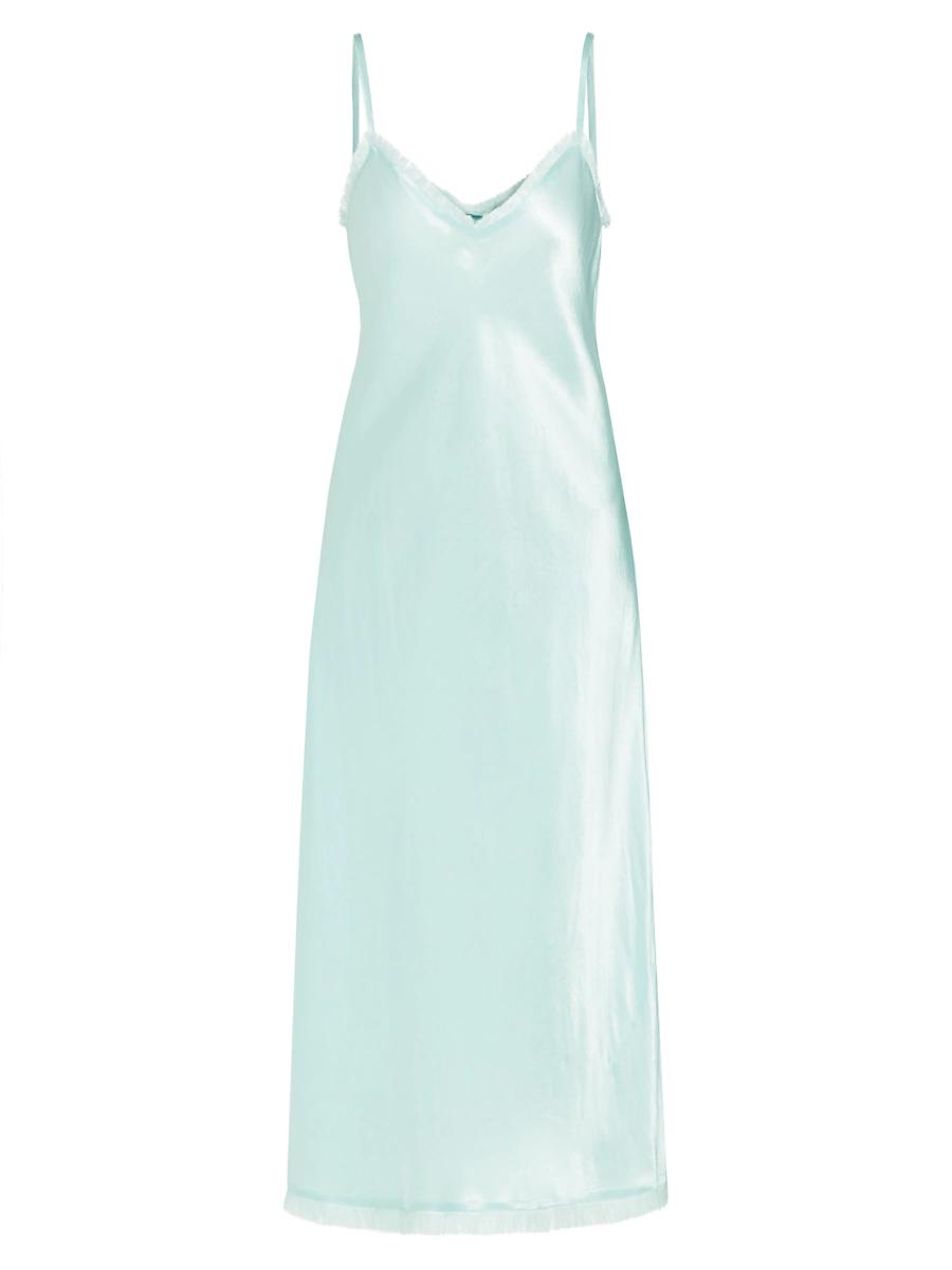 Finished in a sleek satin, Vinces light cami-style midi-dress showcases a scoopneck and frayed-edge trim. Scoopneck Adjustable straps Fray-edge trim Pulls over 100% acetate Lining: 100% polyester Hand wash Imported SIZE & FIT About 46 from shoulder to hem Model measurements: 510 tall Model is wearing a US size 4. Contemporary Sportswear - Vince > Vince > Saks Fifth Avenue > Barneys. Vince. Color: Sea Star. Size: Small.