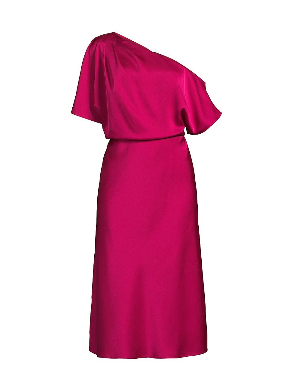Crafted of crpe-backed satin, Aidan Mattoxs cocktail dress showcases a one-shoulder neckline, short sleeves, and a relaxed fit. One-shoulder neck Short sleeves Concealed back zip closure 100% polyester Lining: 96% polyester/4% elastane Dry clean Imported SIZE & FIT About 46.5 from shoulder to hem Model measurements: 510 tall Model is wearing a US size 4. Dress Collections - Aidan Mattox > Aidan Mattox > Saks Fifth Avenue > Barneys. Aidan Mattox. Color: Bright Rose. Size: 16.