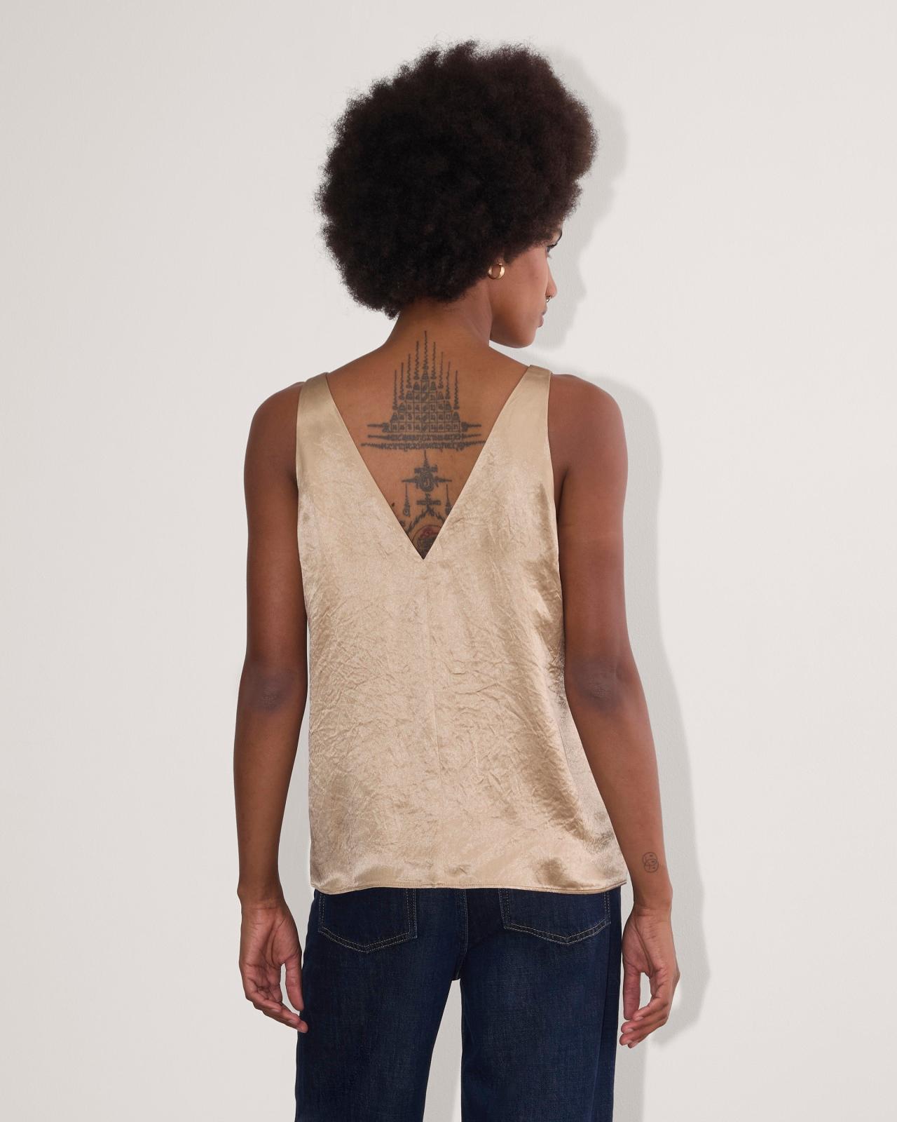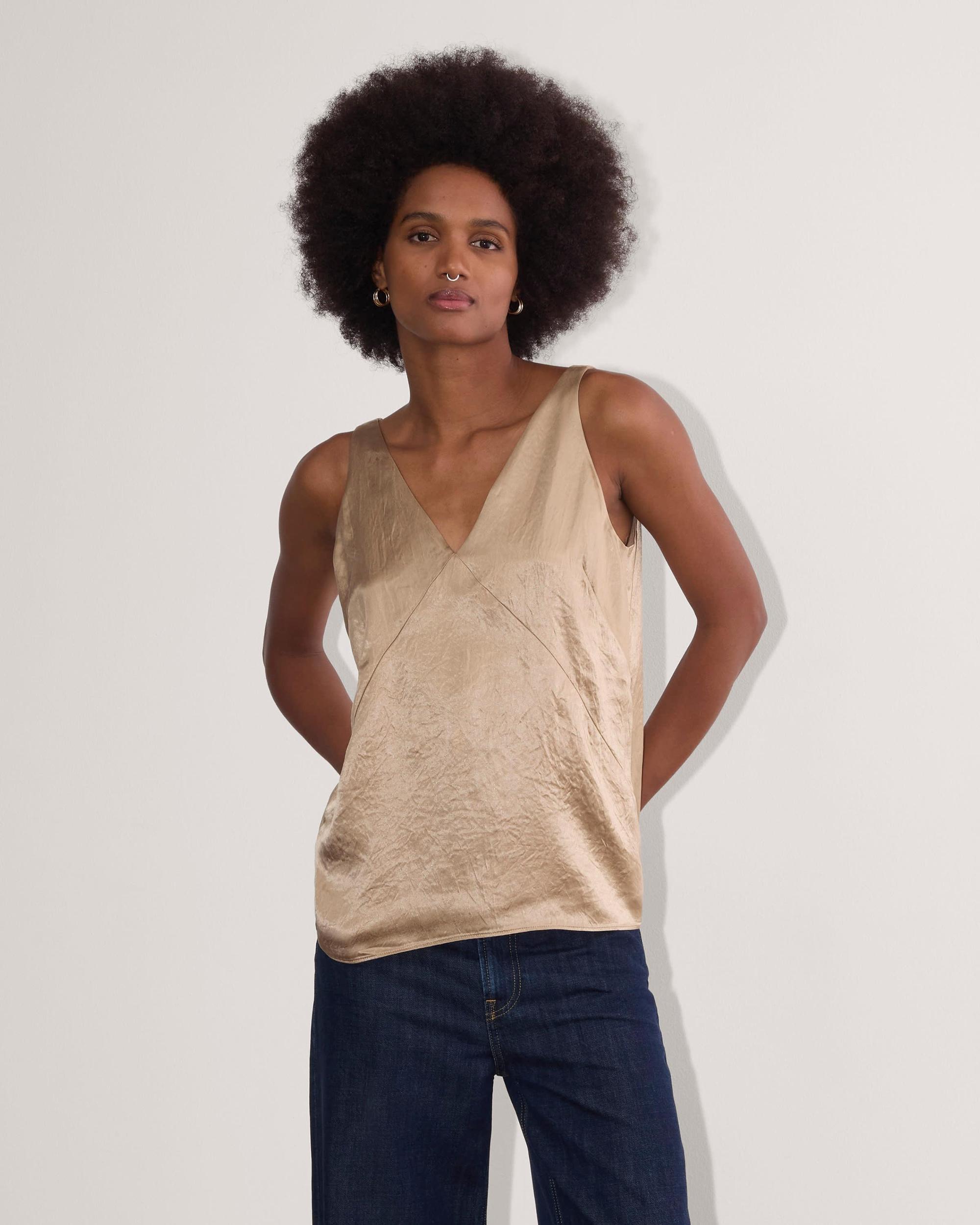 Sorry to all your other tops. We just made your new favorite going out tank. Understated but totally down for dinners, dancing, and after-work drinks, this satin tank made of Naia™ Renew brings all the class, serving a little sass on the side. Featuring a v-neck, slim fit, and front seam detailing, it hits just at the hips so you can tuck it in or wear it loose with any of your favorite bottoms.