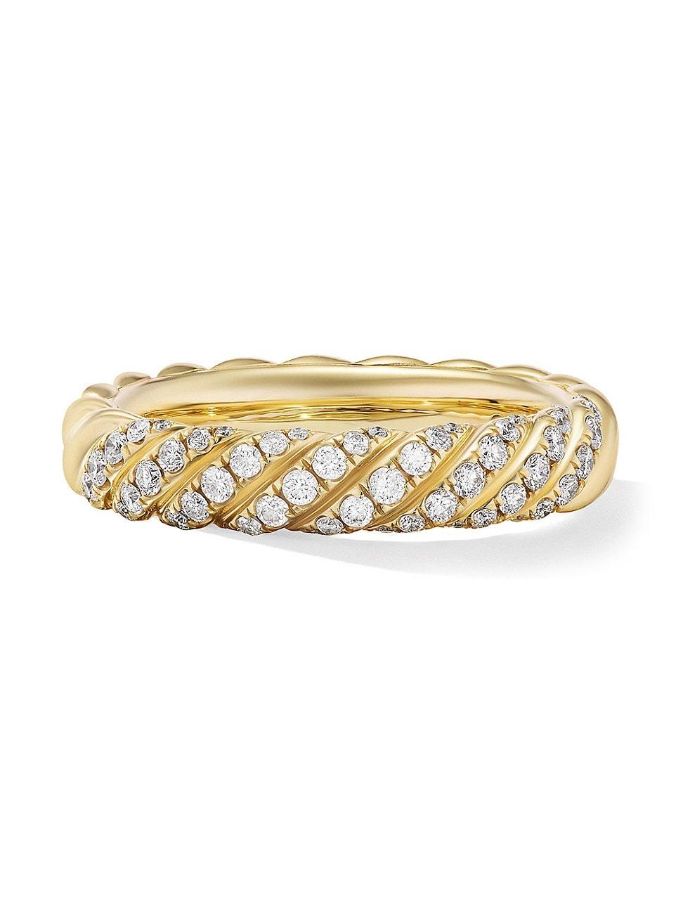 In Sculpted Cable, David Yurman transforms his signature design motif into a carved form. The effect is an entrancing wavelike pattern that retains the dimensional look of Cables original helix. 18-karat yellow gold Pave-set diamonds, 0.39 total carat weight Ring, 4.6 mm Imported ABOUT THE BRAND: David, a sculptor, and his wife, Sybil, a painter, launched their innovative jewelry brand in 1980 in New York City. Since then, the American design house has pioneered cutting-edge collections - from its iconic combination of sterling silver and diamonds to signature pinky rings. Today, with their son Evan, the Yurmans continue to deliver timeless pieces inspired by nature, art, ancient symbols and Manhattans stunning architecture. Lsd Jewelry - David Yurman > David Yurman > Saks Fifth Avenue > Barneys. David Yurman. Color: Gold. Size: 8.5.