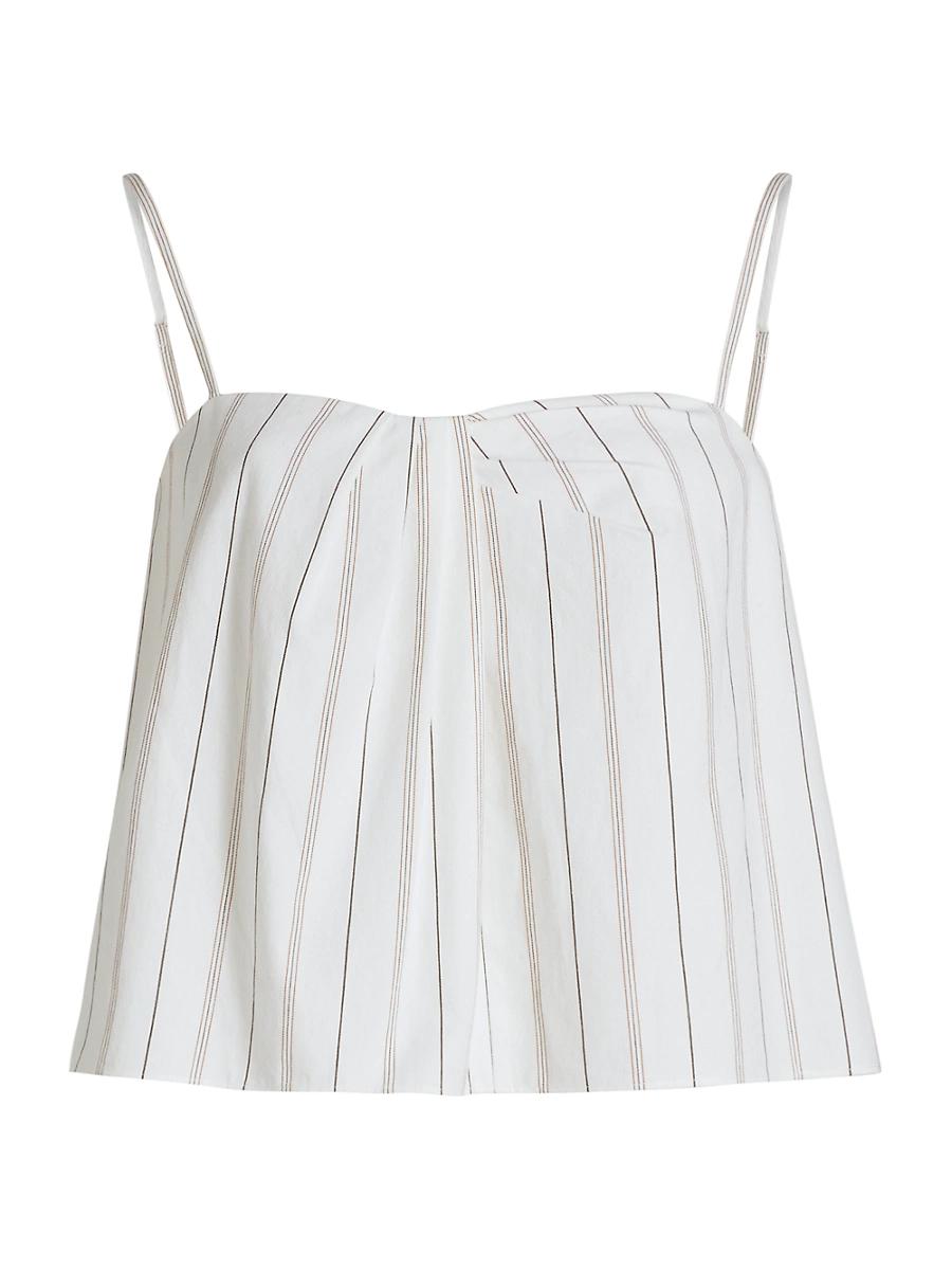 This Seedling striped top from Vince is crafted of cotton, featuring a sweetheart neck, adjustable straps, and a draped front detail for a refined touch. A concealed back zip closure ensures a seamless fit. Sweetheart neck Adjustable spaghetti straps Concealed back zip closure 100% cotton Combo: 100% polyester Dry clean Imported SIZE & FIT About 12.5 from shoulder to hem Model measurements: 510 tall Model is wearing a US size 4. Contemporary Sportswear - Vince > Vince > Saks Fifth Avenue > Barneys. Vince. Color: Off White Marigold. Size: 0.